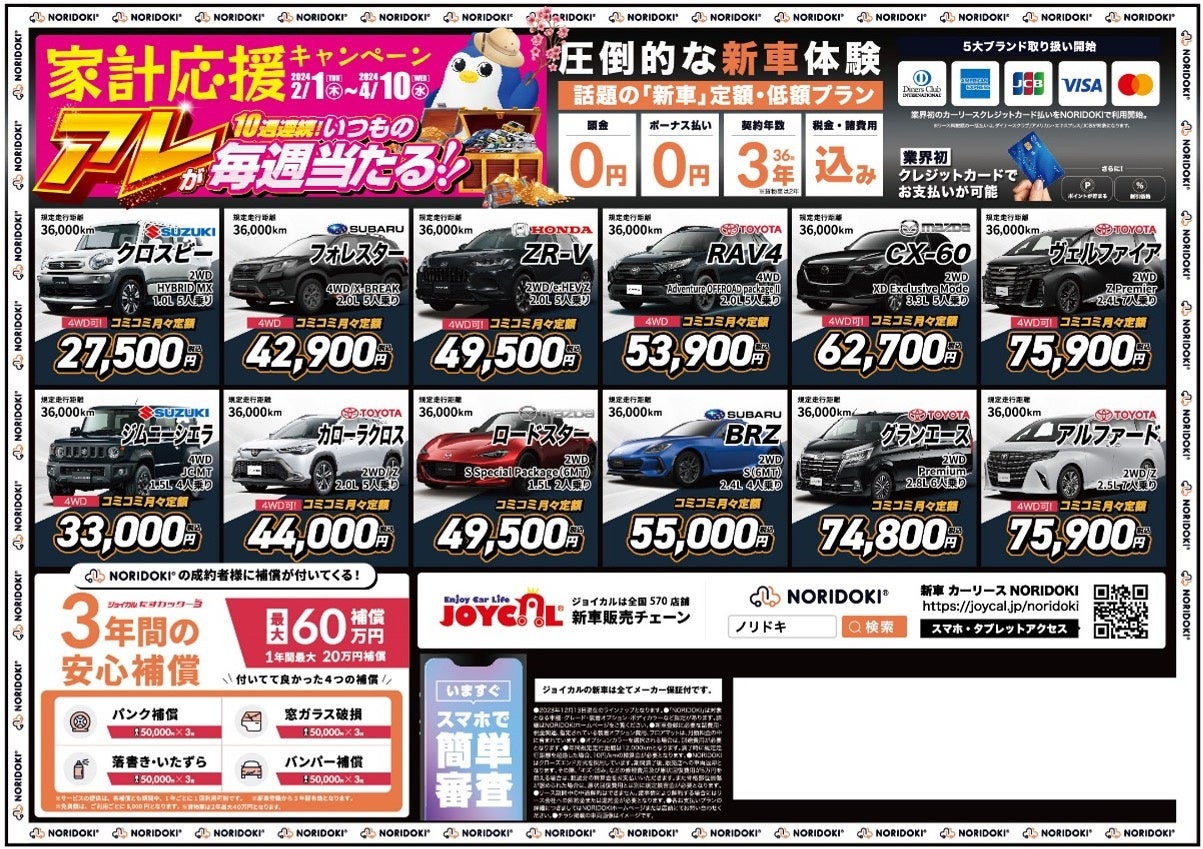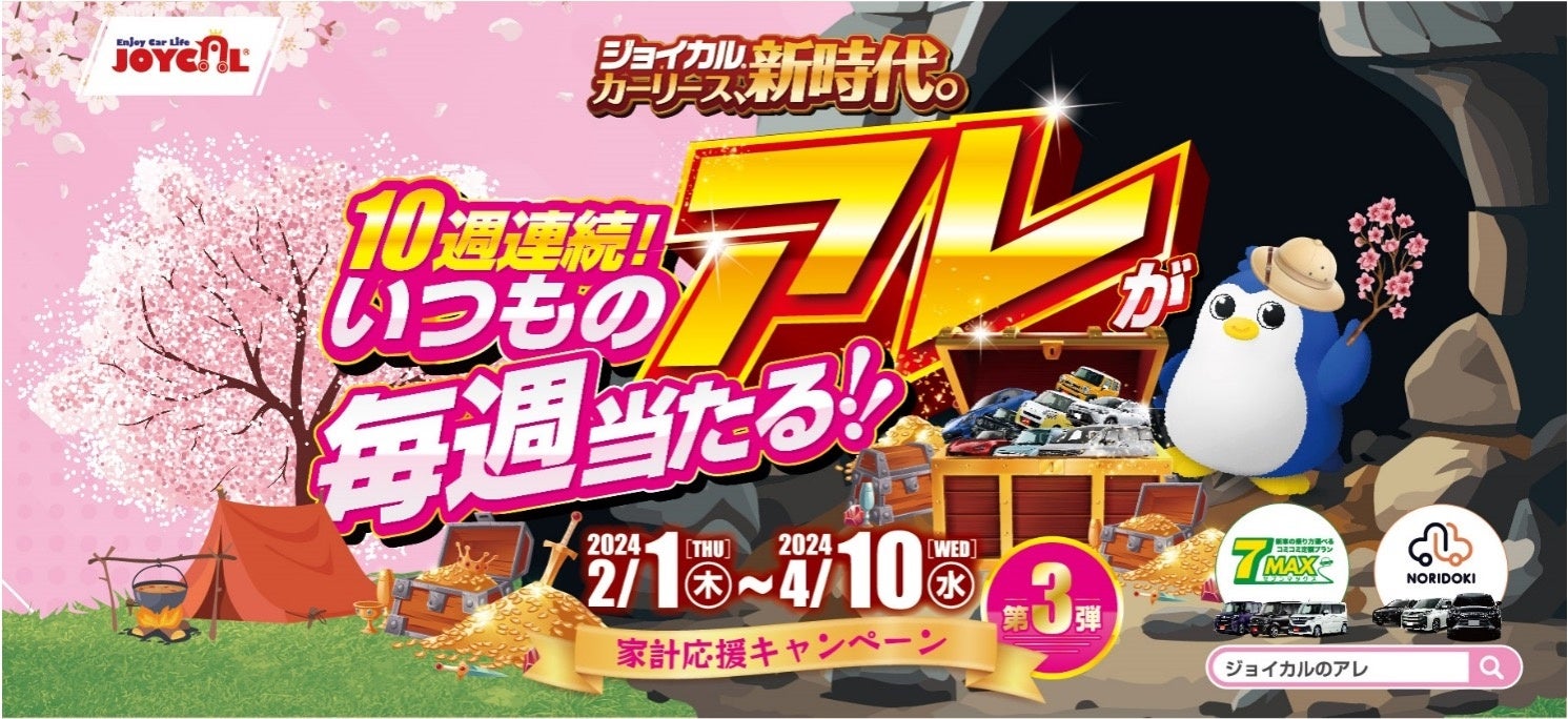 【春のカーリース祭り】ジョイカル、10週連続で20万円が当たる「家計応援キャンペーン」開始 2/1〜