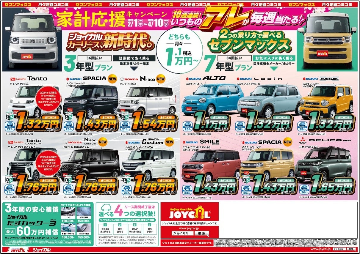 ジョイカルサービス「セブンマックス、NORIDOKI(ノリドキ)、ハーフマックス、コミかる」の新車・中古車のご契約
