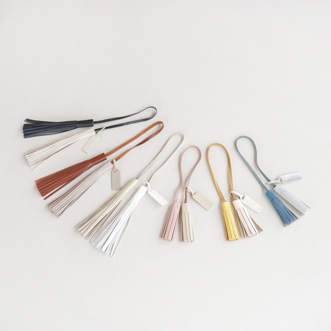 メルカドバッグをカスタマイズできるダブルタッセルシリーズ。レザーのタッセルは、バッグを華やかにしてくれる。取り外しも自由なので、気分でカスタマイズを楽しんで!