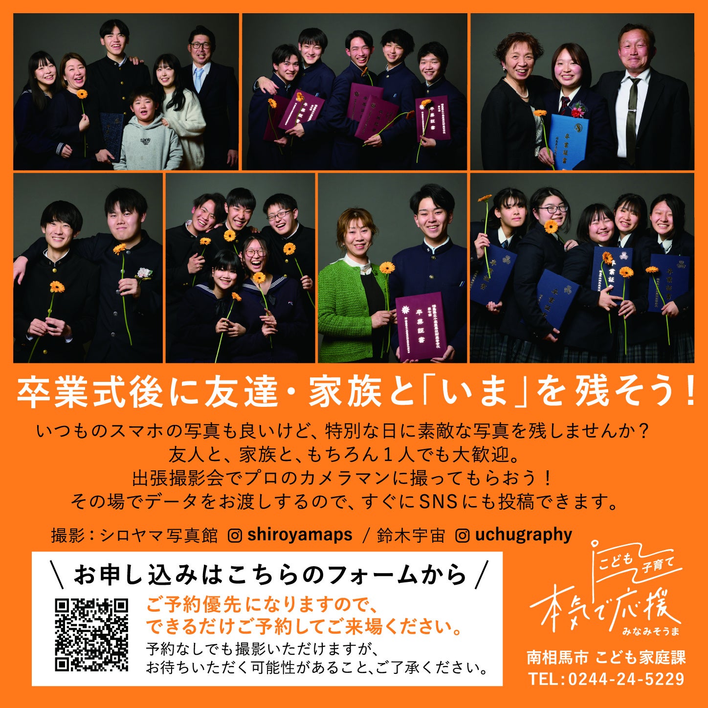 18歳巣立ち応援事業の企画として、県立高校の卒業式に合わせて、卒業おめでとう撮影会を開催します。