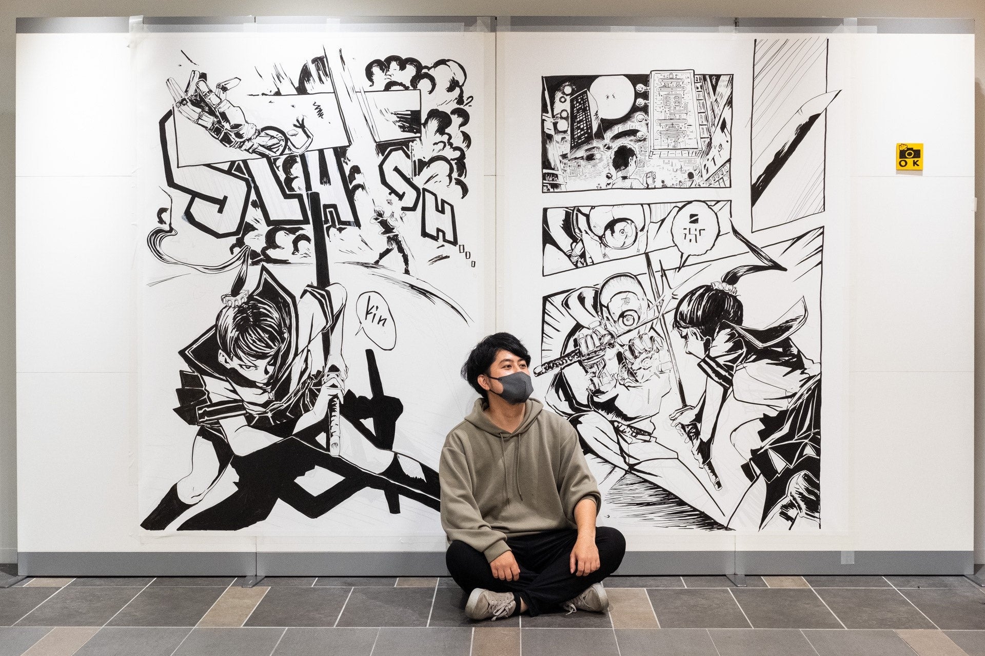 「出現画廊」は、中京テレビ株式会社が主催するデジタルアート美術展のプロジェクトです。2022年1月にスタートし今年3回目が開催されました。 当社はプロジェクトテーマである「新時代のクリエイターを発掘し、活躍の場を創出することができないか?」という思いに共感し、第一回目から協賛企業として過去に展示スペースの提供などで参加しています。 今回のイベントにおいては、総勢500名以上のクリエイターが参加したイラストレーションアワード「出現画会」に『キンコーズ賞』を設け、副賞としてツクルでの個展開催とグッズ販売が行える権利を授与しました。