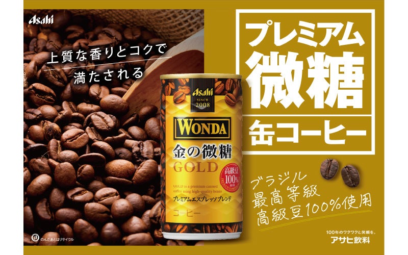 高級豆100%使用、プレミアムエスプレッソブレンド、プレミアムアロマがこだわりのプレミアム微糖缶コーヒー。