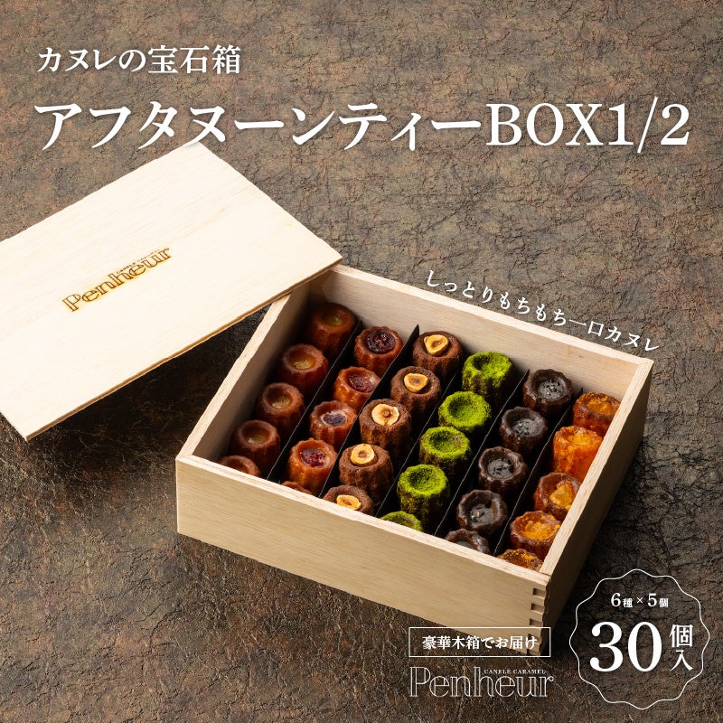 神戸Penheurのカヌレ&キャラメル専門店が作るひとくちサイズのカヌレを豪華な木箱に詰合せました。お祝い事やパーティーなど大勢での集まりのギフトとしても大人気です。