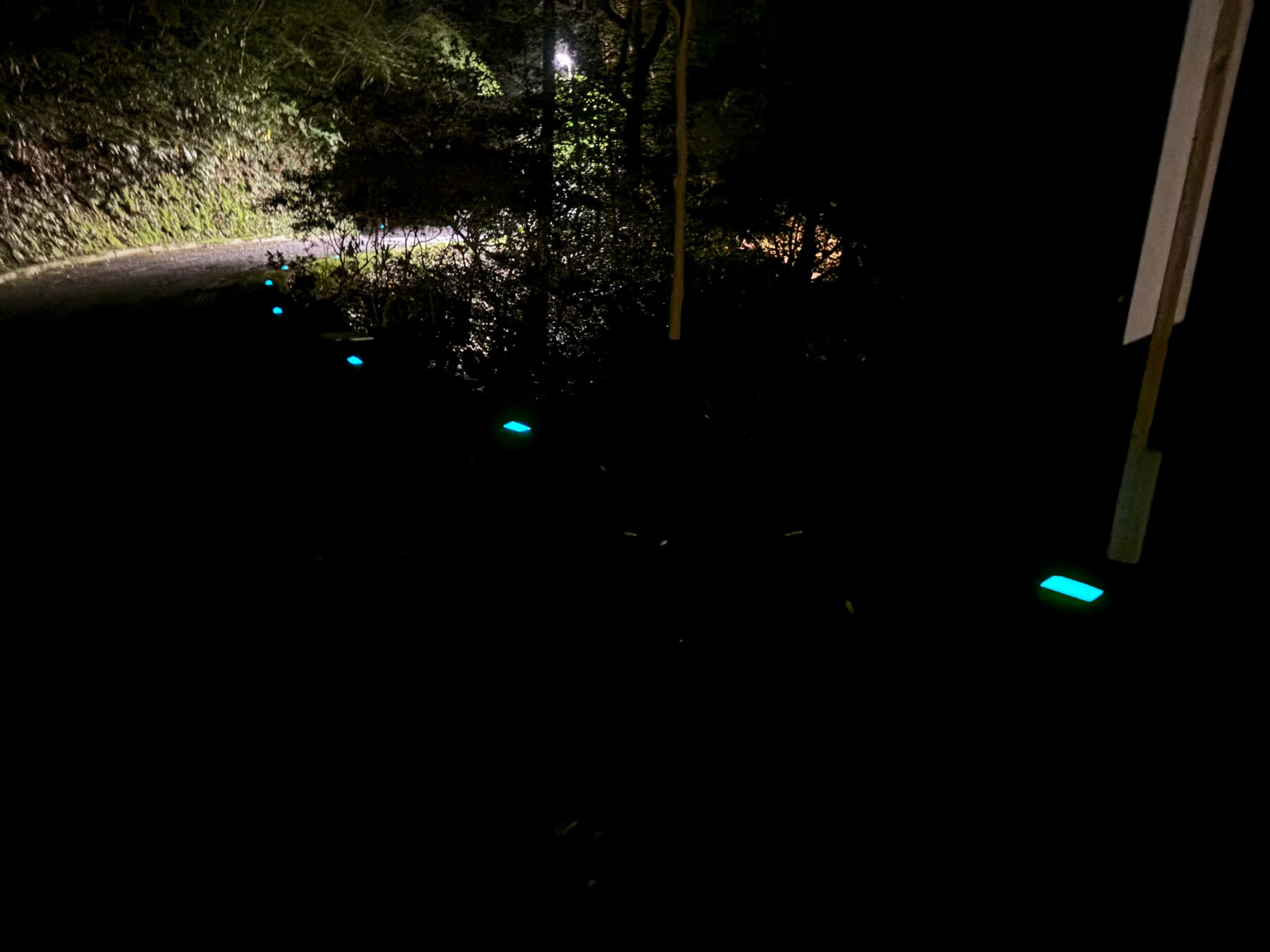 今回、その約1キロにおよぶ裏参道の中でも、特に暗い場所や崖が近接するエリアの路肩に、新製品「ナイトコンシェルジュ 3Dクリスタル」100ユニットを連続配置。参拝者および通行車両の夕刻から夜間における移動を、安全に、そして快適にエスコートする取り組みがスタートしました。