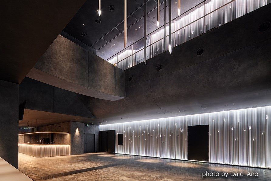 ホワイエ周りにあるユニークなアルミ壁と天井から下がるアルミパイプがアートと呼べる程のユニークさで、これからのインテリアデザインにおける展開が期待されます。