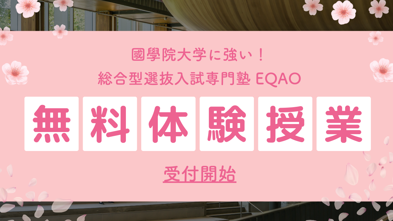 〈國學院専門コース〉総合型選抜入試対策塾EQAO【業界トップクラスの合格率と合格実績】総合型選抜入試で國學院大学に合格したいなら國學院大学専門塾EQAO。國學院大学合格を支援する相談窓口を設置します。