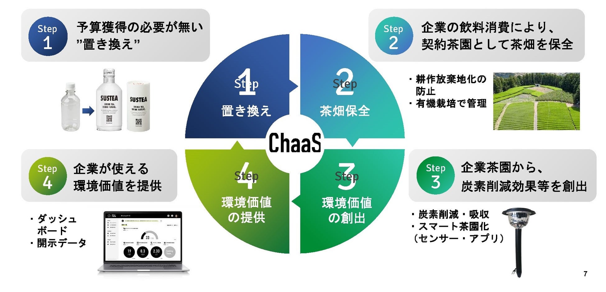 2050年までのカーボンニュートラル実現に向けて、市は令和6年度に開催した菊川チャレンジビジネスコンテストで優秀賞を受賞した「Blue Farm(ブルーファーム)株式会社」とタイアップし、「菊川茶」を活用したサステナブルな取組を開始するとともに、本取組に参加する企業を募集します。