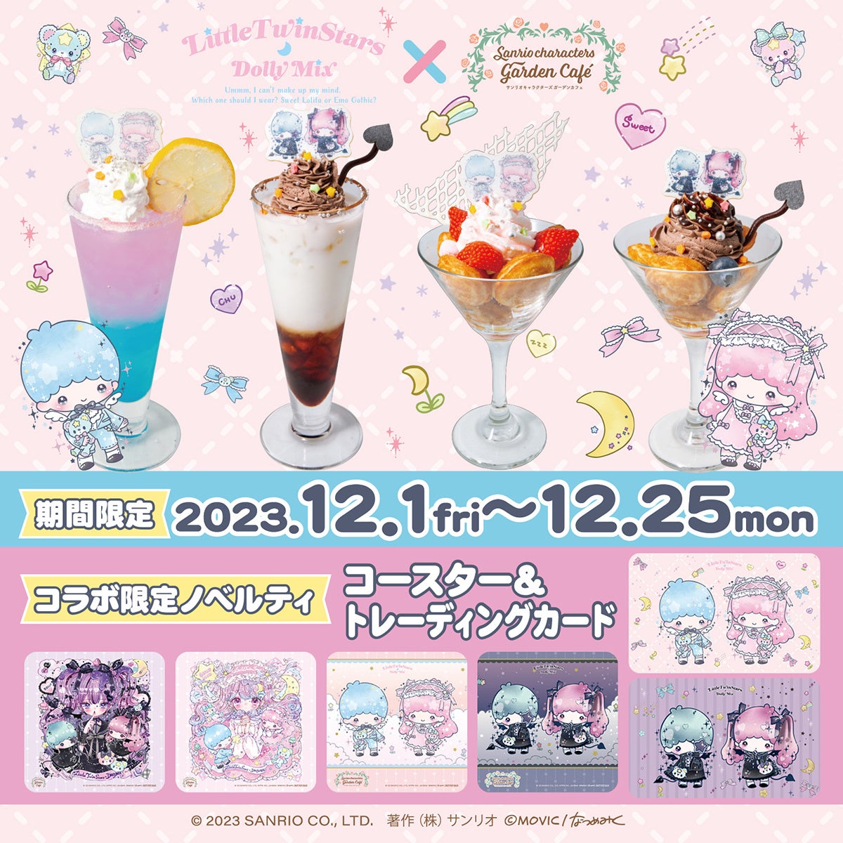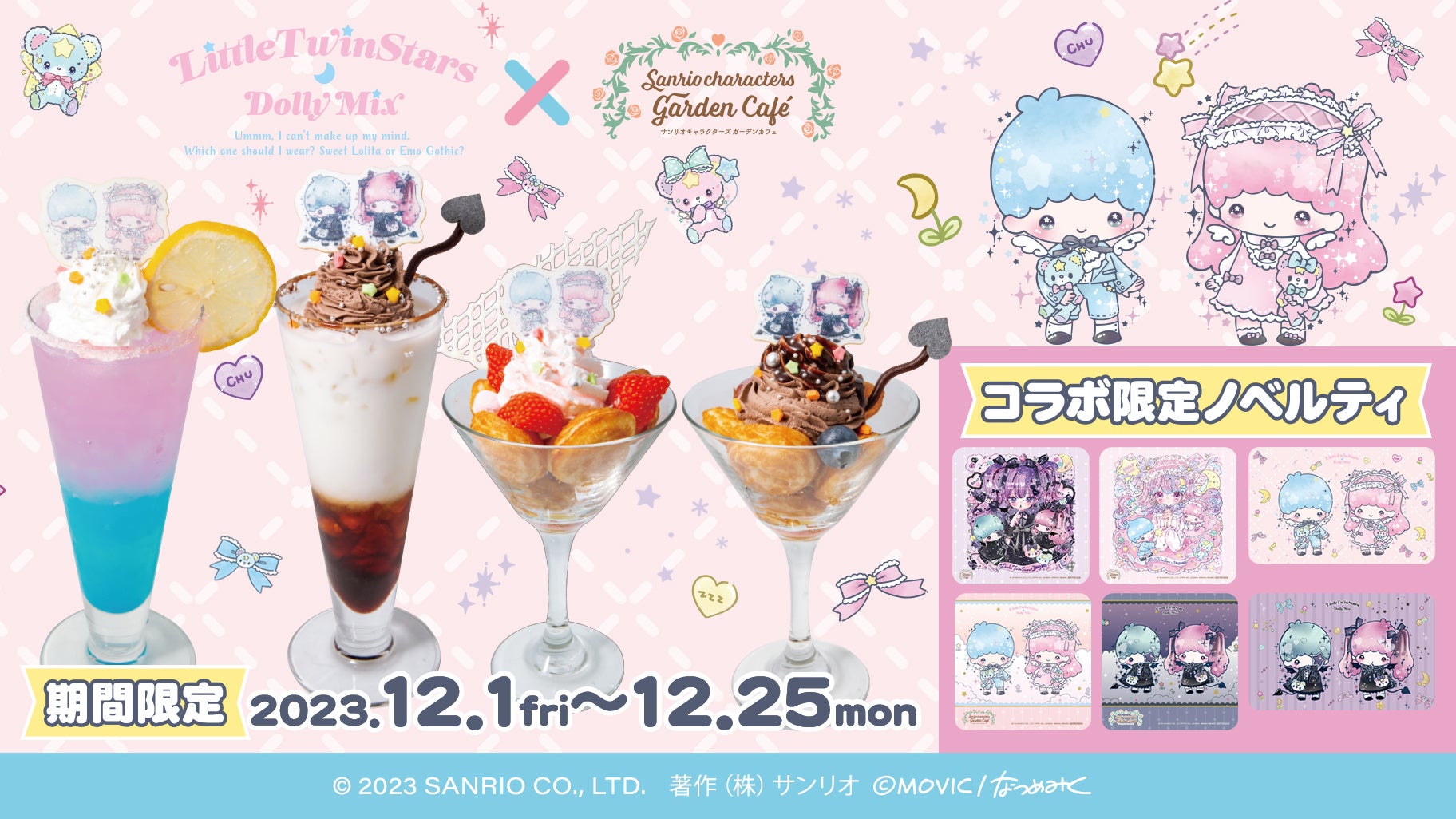12/1(金)~12/25(月)サンリオキャラクターズ ガーデンカフェにて「リトルツインスターズ×DOLLY MIX(どーりーみっくす)」コラボが決定!