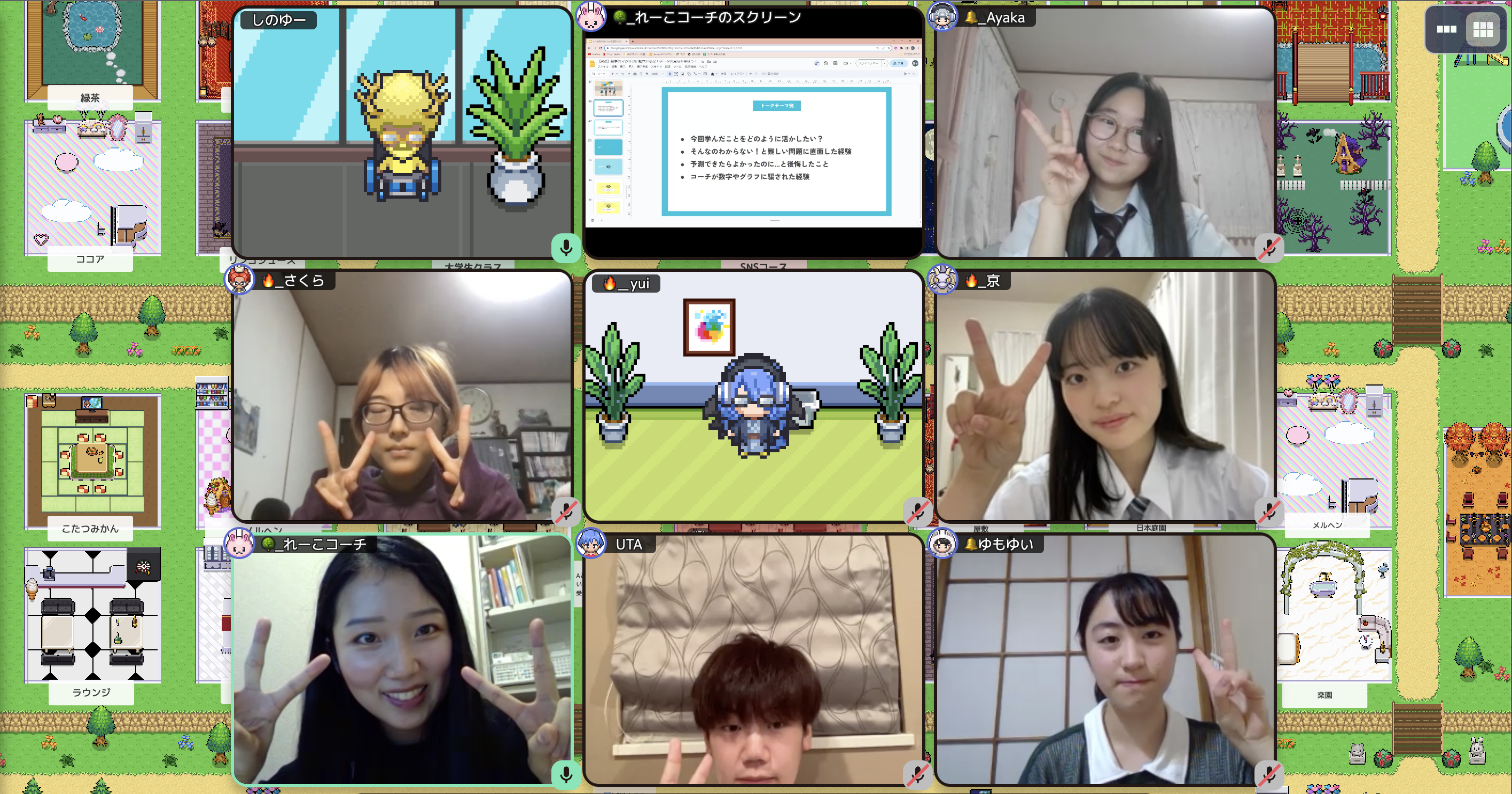 ――学生や社会人が集う「オンライン部室」での活動の様子です。全国から多種多様な価値観、バックグラウンドを持つメンバーが集まり、フラットに、互いを尊重しながら対話や学びのワークショップを行っています。
