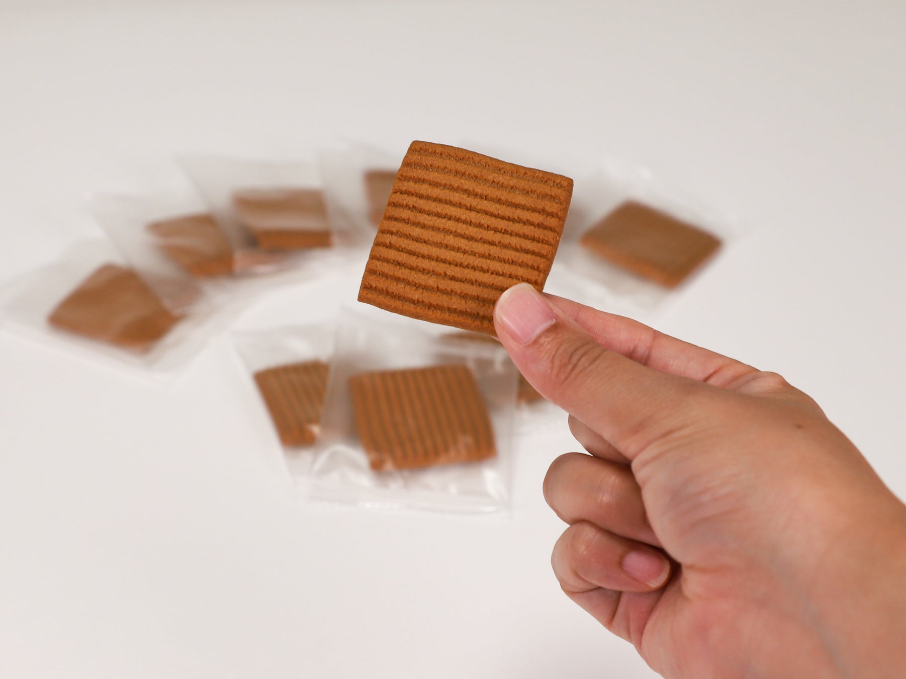 ミュージアムでの体験をもっとも深く「味わう」ことができるのは、食べ物をおいて他にありません。何しろ「観る」どころか、体の中に取り込んでしまうのですから! 「シナモン香るスパイスクッキー」は薬として遣唐使が持ち帰り、現在も正倉院に残る香辛料のシナモンにスポットライトを当てました。九州国立博物館に展示されている遣唐使船模型をモチーフにしたレトロかわいいパッケージは、旅のお土産にもぴったり。ものと文化とが行き交った、壮大な旅路に思いを馳せるティータイムのお供にお召し上がり下さい。