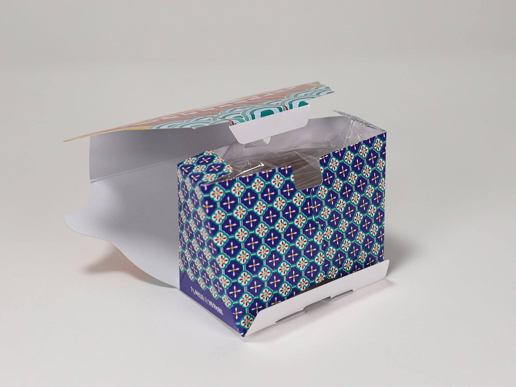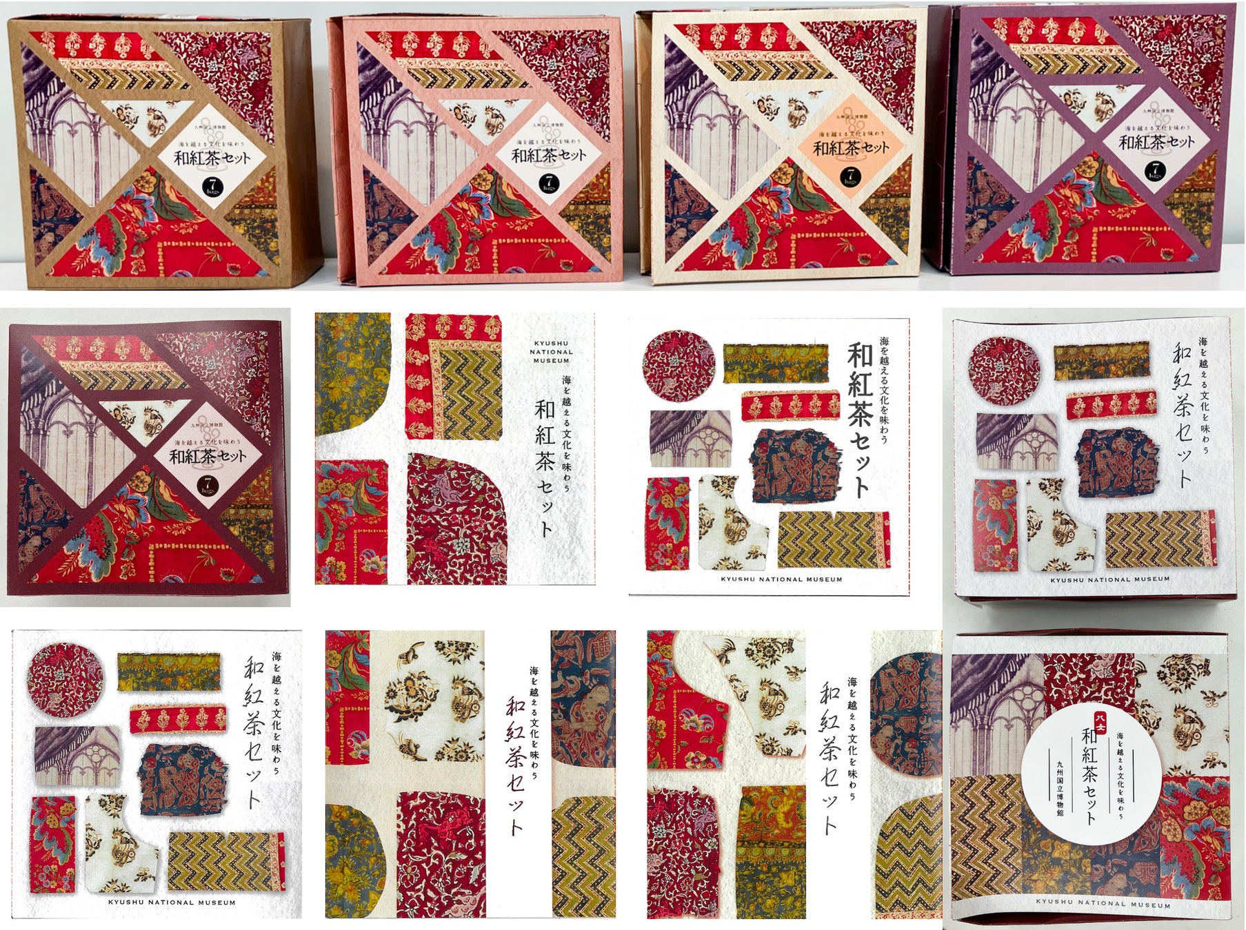 その更紗と、“世界に広まり海を越えて日本に伝わった”という来歴が同じである紅茶を組み合わせたのが「海を超える文化を味わう 和紅茶セット」です。個包装の袋には、無数にある九州国立博物館の更紗コレクションの中から美しさ、鮮やかさ、多彩さが伝わるよう、学芸員と商品企画担当者で選定を重ね、生産地と時代、柄、色味などのバランスを考慮して7種をピックアップ。解説パンフレット付きで、更紗への知識を深めることもできます。外箱は柄が生きるように10種類以上のデザインを考え、きれいに印刷できる印刷所を探し、色の再現にこだわりました。