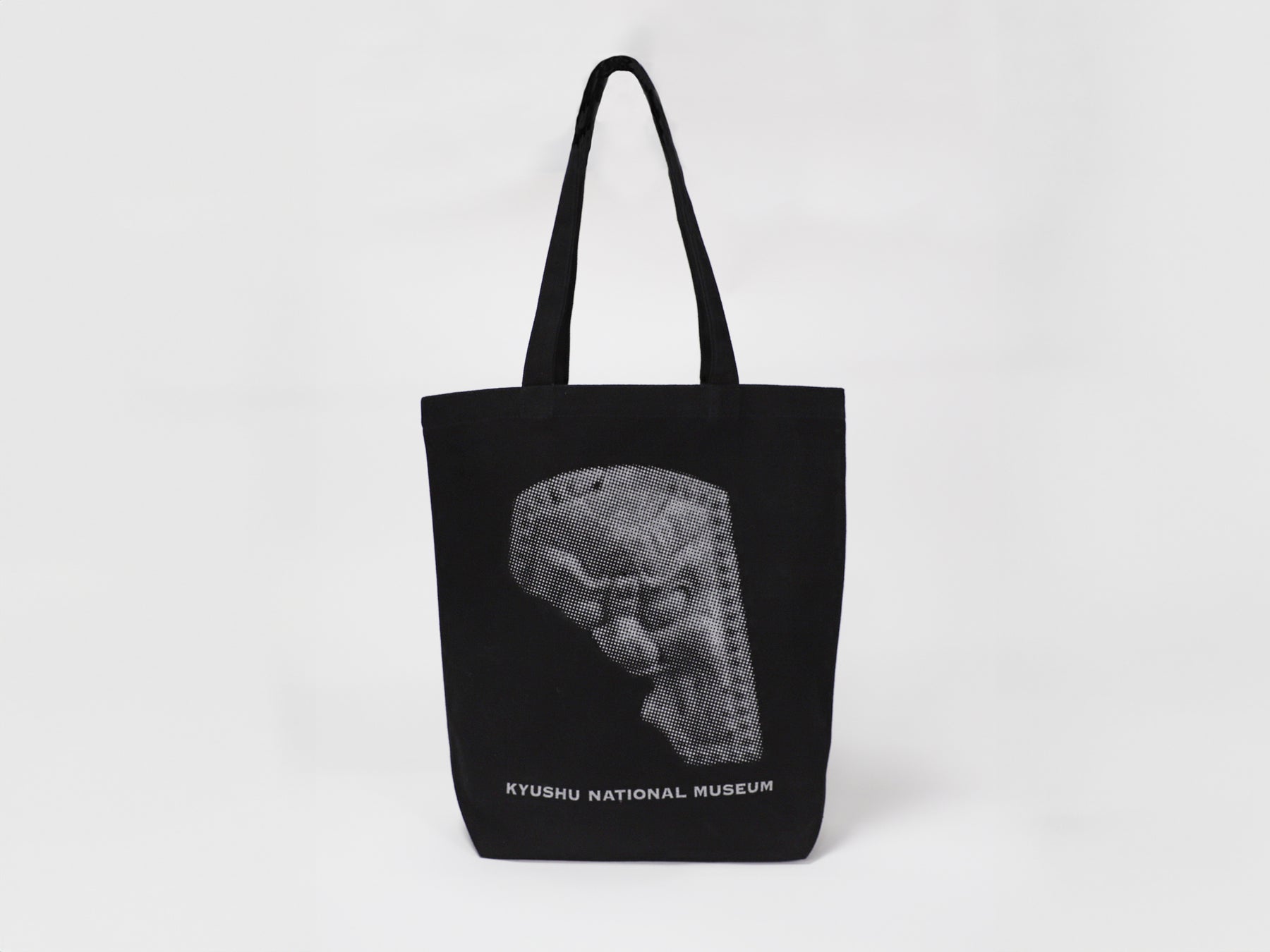 1300年前から大宰府政庁の屋根でメンチを切ってきた鬼瓦の顔面を、トートバッグに移植。銀色のリフレクター印刷がヘッドライトの光などを反射して夜間でも持ち主の存在を知らせ、不用意に近づく輩には破邪の眼力が睨みを利かせます。屋根や建材を風雨から保護し、外部から悪いものや人が入ってこないよう守護してきた鬼瓦の役割と、その鬼瓦を守り伝える博物館の使命とを重ね合わせた、「守る」がテーマの20周年記念グッズです。