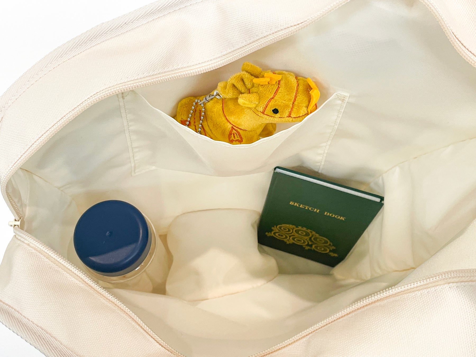 九州国立博物館のコレクションでも屈指の人気を誇る《埴輪鹿》を、持ち歩きやすいよう、実物の約3/4スケールでバッグに落とし込みました。とぼけた表情が魅力的な正面だけでなく、展示では見えにくい背面まで律儀にプリント、360度隙がありません。ぬいぐるみより便利で、バッグよりかわいい埴輪鹿トートと一緒なら、ミュージアムめぐりもいっそう楽しくなるはずです。貴重品をしまう便利な内ポケットつき。