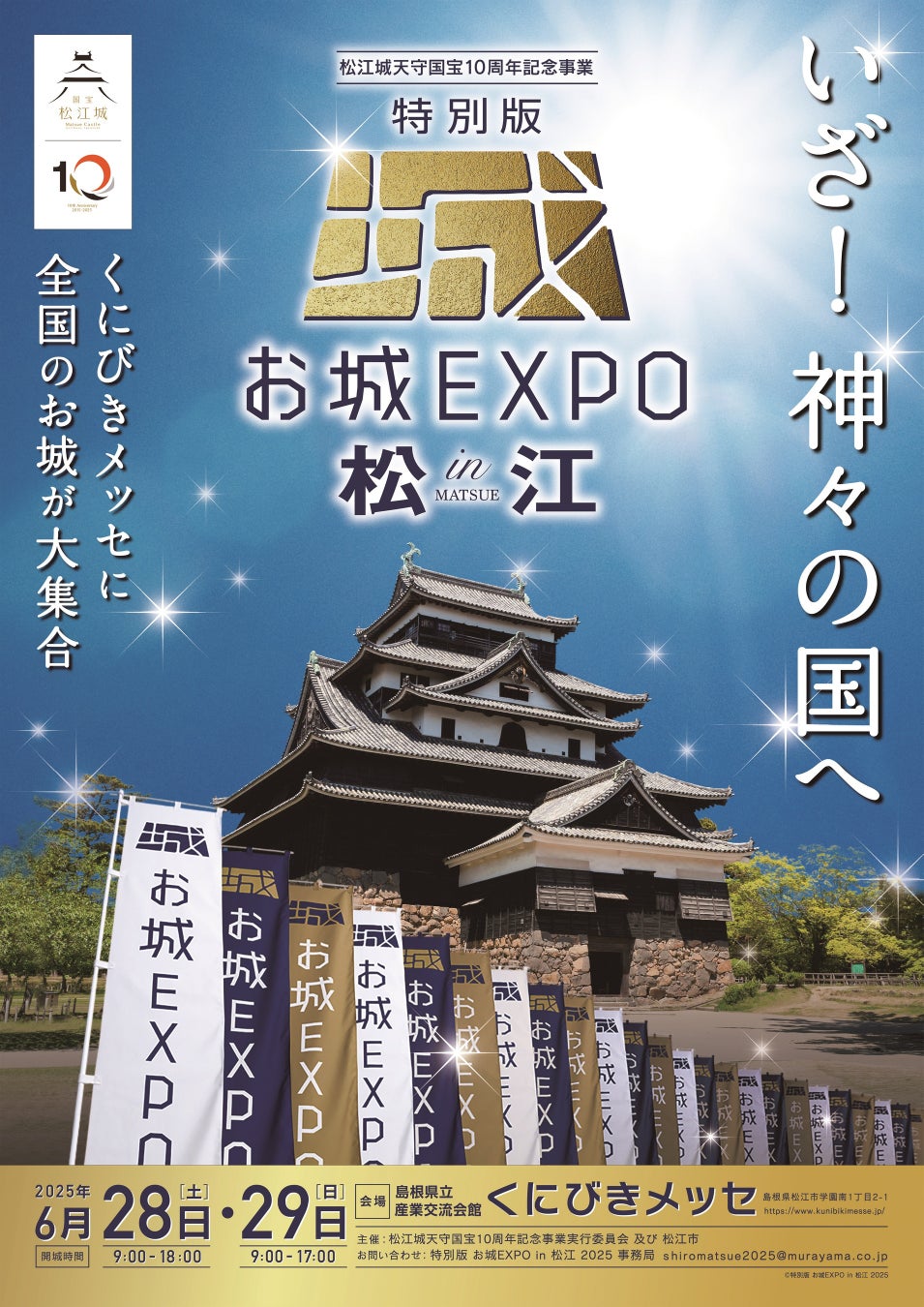 今回の『特別版 お城EXPO in 松江 2025』(主催:松江城天守国宝10周年記念事業実行委員会 及び 松江市)は、12月開催の「お城EXPO 2025」(パシフィコ横浜)よりも一足早く、6月に松江城天守国宝10周年事業の一環として開催いたします。