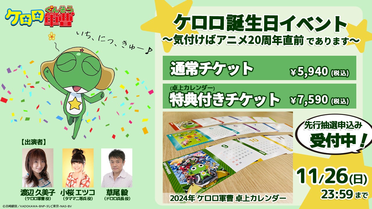 ケロロ誕生日イベント ~気付けばアニメ20周年直前 であります~ チケット先行抽選申込受付中!