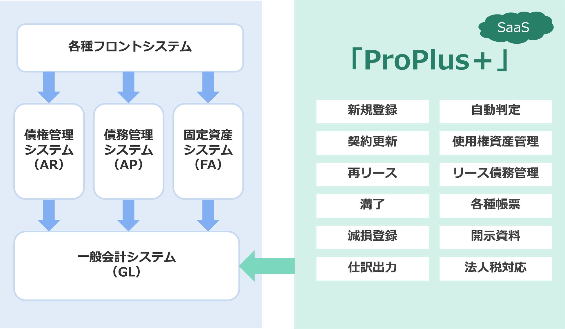 今回の新リース会計基準は、2019年から適用されている国際会計基準(IFRS)のリース(IFRS16)と同様の基準で作成されています。当社は約100社あるIFRS16対応実績を活かし、新リース会計基準に対応した新製品「ProPlus+(プロプラス プラス)」をリリースし、お客様の円滑な制度対応をサポートいたします。
