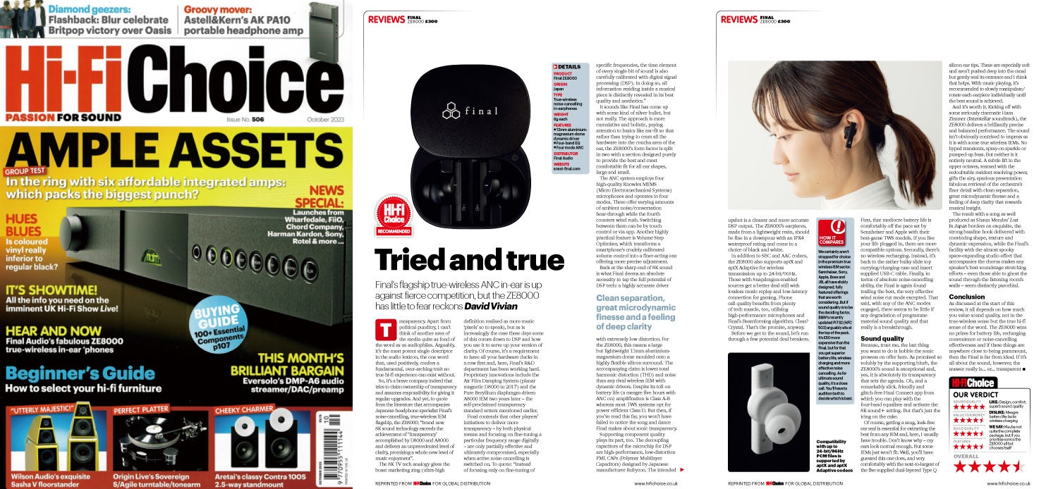 ZE8000は、これまでに国内最大級を誇るオーディオビジュアルアワード『VGP2023 WINTER』でワイヤレス大賞や金賞のほか、『ASCII BESTBUY AWARD 2022』では編集部特別賞を受賞いたしました。また、海外での評価も高く、イギリスの有名オーディオ専門誌「Hi-Fi Choice」からは、一定の高い基準や性能を満たしている製品に贈られる「Hi-Fi Choice RECOMMENDED」にも選ばれております。