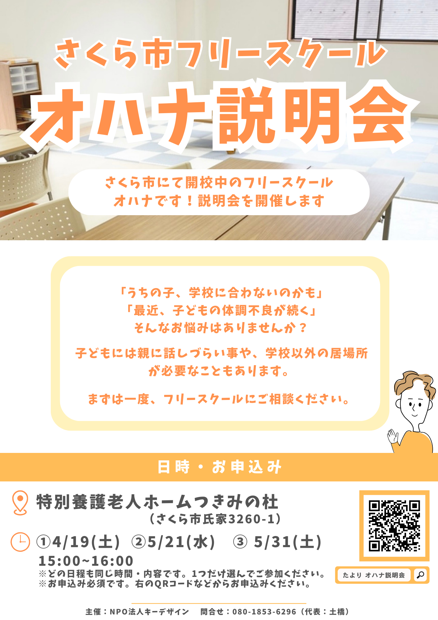 NPO法人キーデザインは、栃木県さくら市で運営するフリースクール「オハナ」についての説明会を、2025年4〜5月に開催。子どもたちの「安心できる居場所」の在り方やオハナの活動内容をご紹介します。