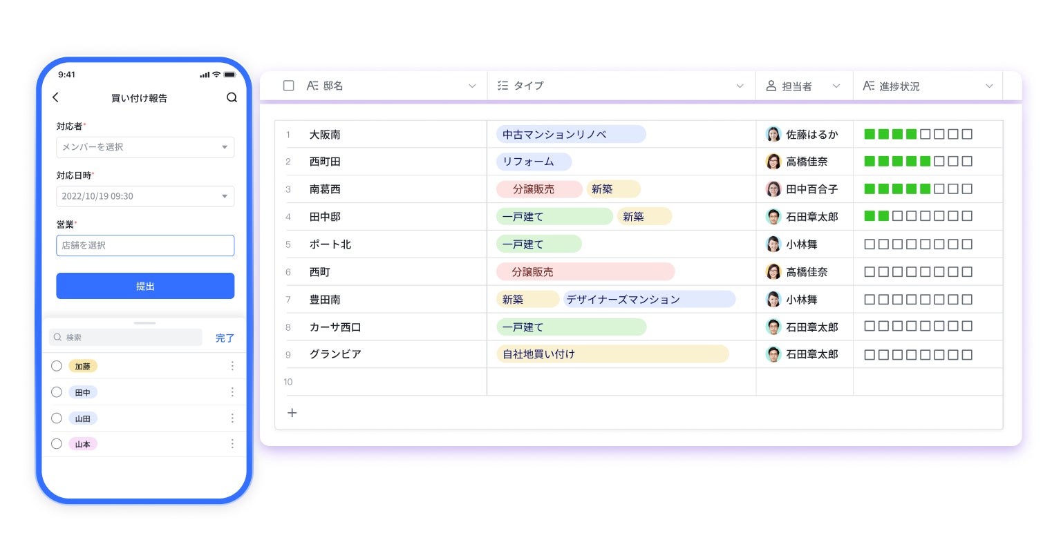 アレジ株式会社では、各物件の工程や入金日の管理のために表計算ソフトで物件管理表を作成していました。しかし、管理表の点在により記入漏れが発生していました。
