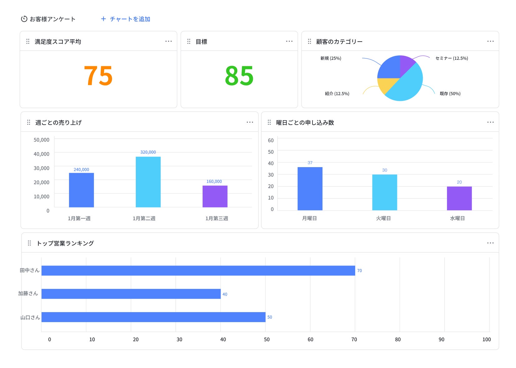 「お客様アンケートを蓄積したものがダッシュボードにグラフ化されるようにしました。それを週に一度、社員全員のチャットグループへ配信することで、全社員がこの指標を確認できるようになりました。Lark Baseの導入により、重要な指標であるお客様アンケートを経営に活かせています。」