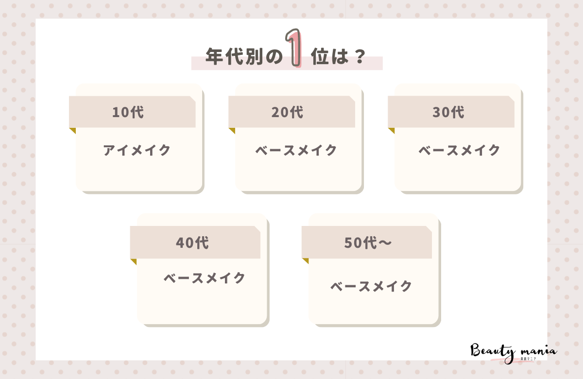 『ベースメイク』と回答した多くの人は、「汗で崩れやすい」「皮脂でファンデの崩れが気になる」という声が多く、他のアイメイクやリップと比べると「ベースメイクが崩れると目立つ、気になる」といった理由でした。