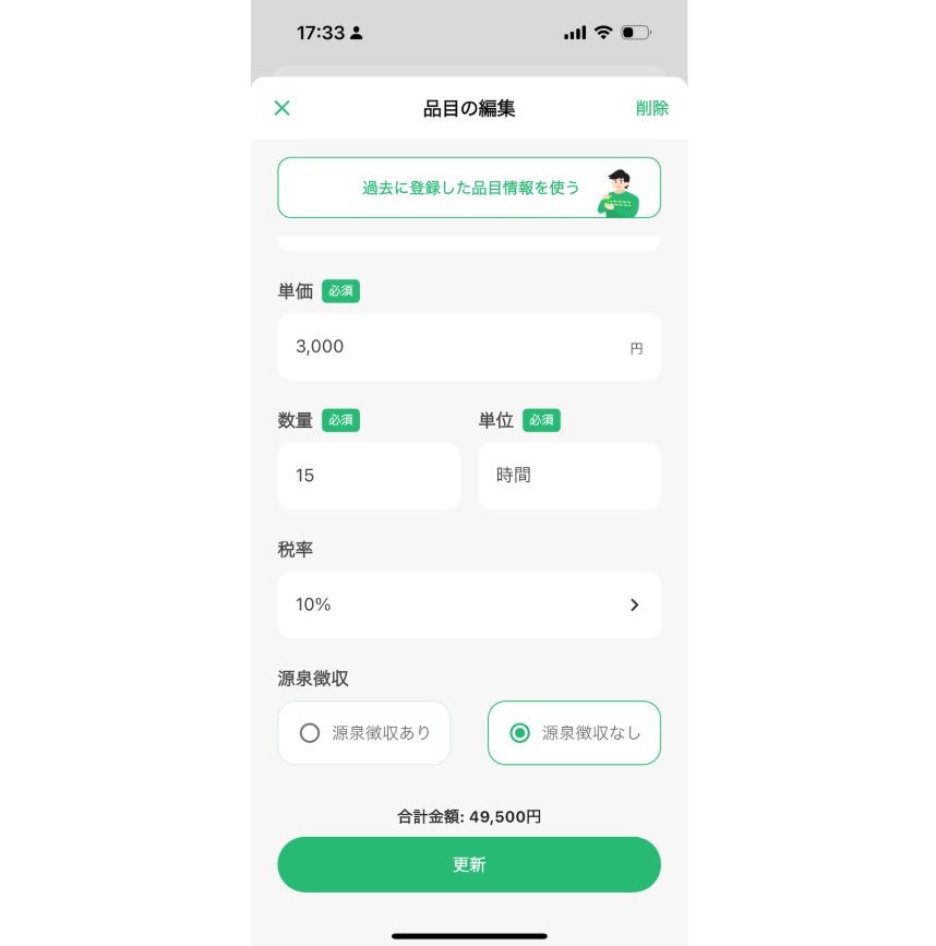 計算ミスや記入漏れの防止 :自動計算機能と必要項目のガイドにより、請求書作成時のミスや漏れを大幅に減らす。