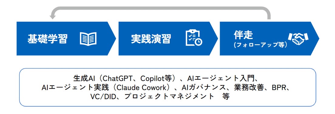 AI研修の「やりっぱなし」を終わらせる。人材育成から現場定着・業務改革まで、企業の実情に合わせて伴走する長期支援サービス