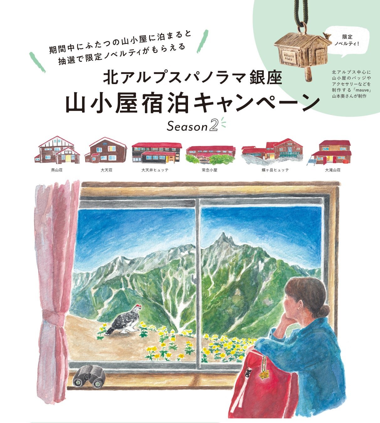 安曇野市山岳観光推進実行委員会(事務局:長野県安曇野市)では、山小屋利用促進のため「北アルプスパノラマ銀座山小屋宿泊キャンペーン」を開催中です。対象期間中に、北アルプスパノラマ銀座にある2つの山小屋に宿泊した方の中から、抽選で200名にキャンペーン限定ノベルティをプレゼントします。