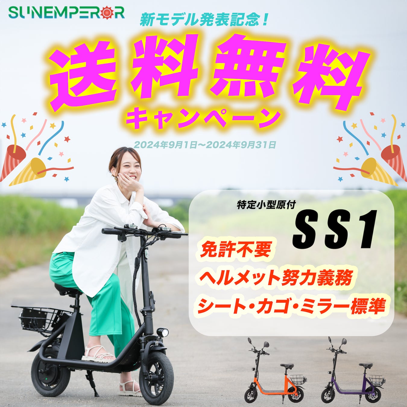 キャンペーン期間中、Sun Emperor公式ECショップにて特定小型原付「SS1」をご購入のお客様に、通常配送料5,500円が北海道から沖縄まで期間限定”送料無料”でお届けいたします。