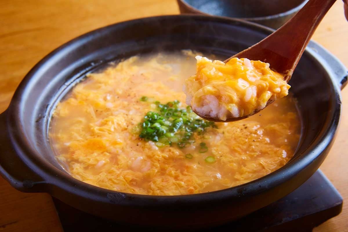 鶏の旨みを最大限に抽出した黄金鶏スープとブランド卵である「赤玉頑固」の濃厚な旨みを絡ませて作り上げた雑炊は「鶏」を凝縮した一品!