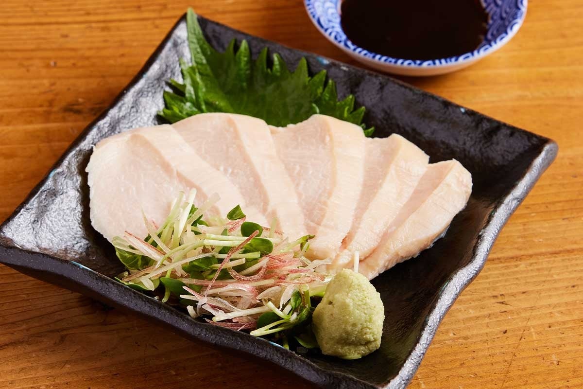 新鮮なむね肉を低温調理してしっとり柔らかく仕上げ、鳥刺し風にご提供します。