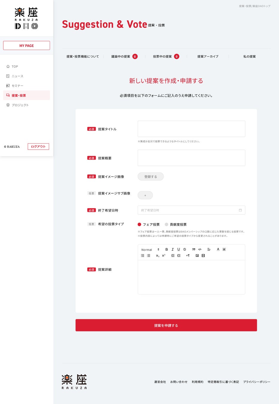 この機能を通じて、ユーザーは楽座コミュニティ内で運営方針やプロジェクトに対する提案を行い、その提案に投票することで意思決定プロセスに貢献できます。DAOの理念を実現する重要な一歩です。