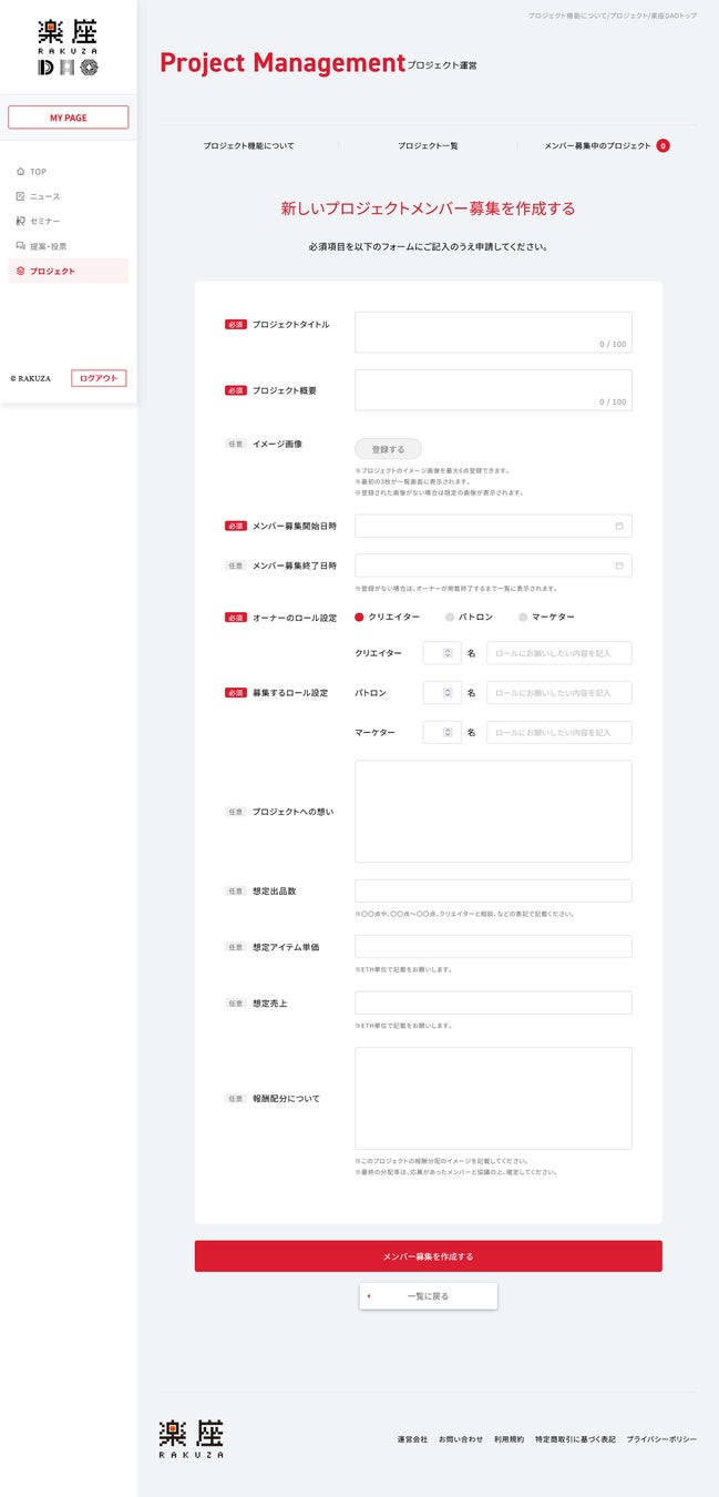 楽座NFTマーケットプレイスでプロジェクトを立ち上げる際、必要なスキルや役割に応じてメンバーを募集できる機能を新たに追加しました。
