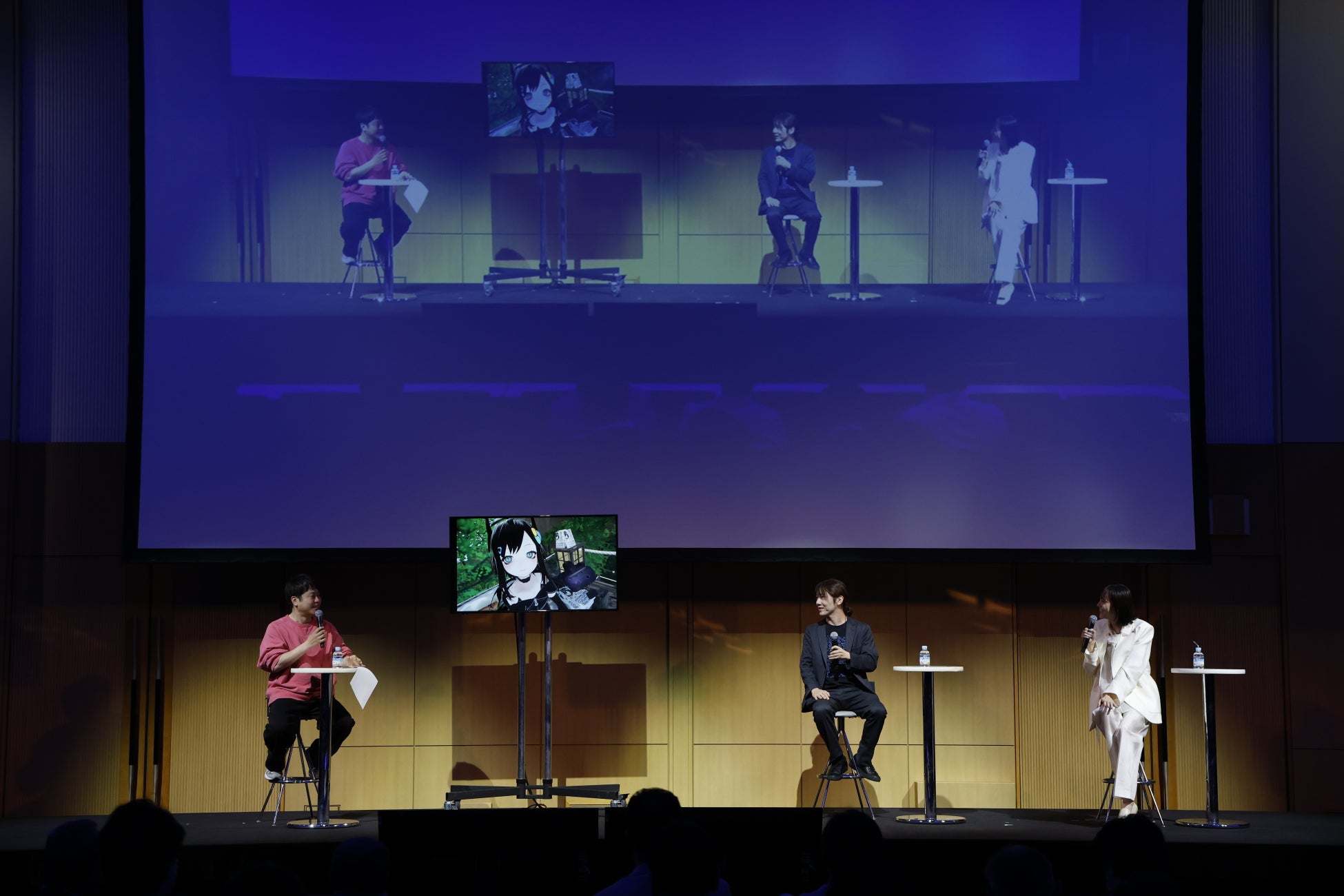 最初は「生成AI」のテーマを全員で語り、安野さんは「最近はアート作品や音楽制作などにも活用されており、日常生活でも様々なシーンで使われるようになってきましたね」とコメントし、安野さんが生成AIで作成した“AI時計”の映像が流れると会場は大盛り上がり。AIの活用方法を知った井上さんは「これ以上進化しないでほしいです!僕らの仕事がAIにとられるじゃないですか!」と将来の不安を感じた所もありながら、AIが人間と共生していく未来について説明を受けると、「今後AIが作った台本を演じる日がくるかもしれないですね。」とAIへの期待を語りました。