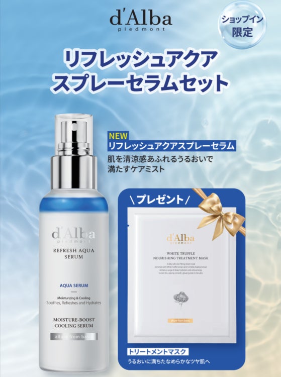 トリートメントマスク1枚がついてくるリフレッシュアクアスプレーセラムセット発売予定。