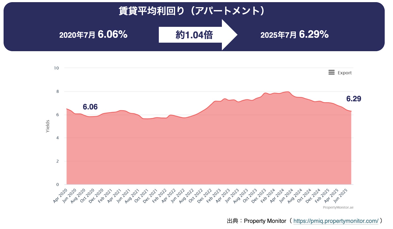 Arjan(アルジャン)の表面利回りは平均6%台(Property Monitor 2025年8月 当社集計)としてあるため、インカムゲインを重視の投資設計も可能です。