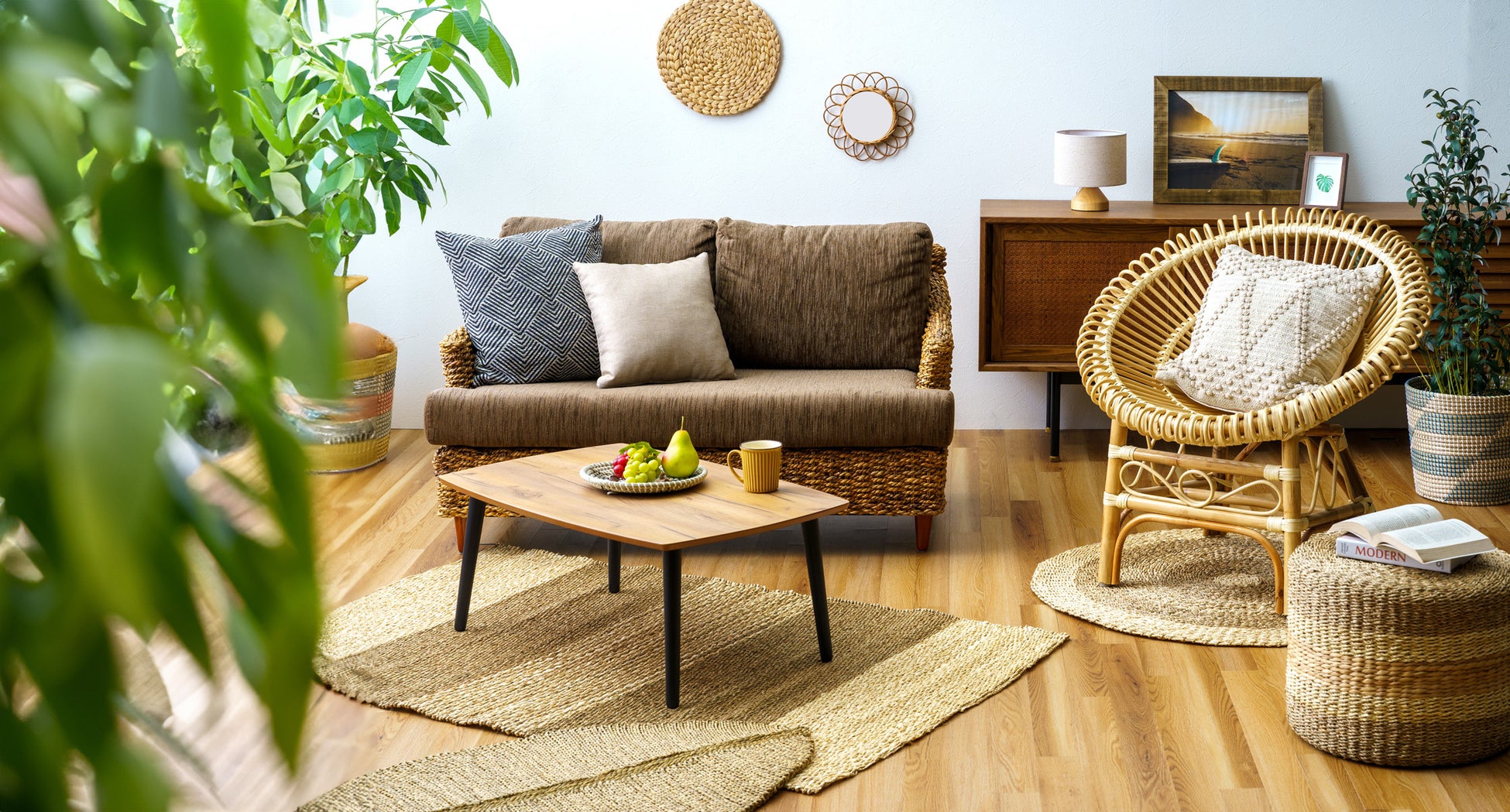 家の中でも自然を感じられる、シーグラスやヒヤシンスなどの天然素材を使ったインテリアをご紹介。マットやスツール、鉢カバーにもなるバスケットなど、多彩なアイテムを取り揃えています。