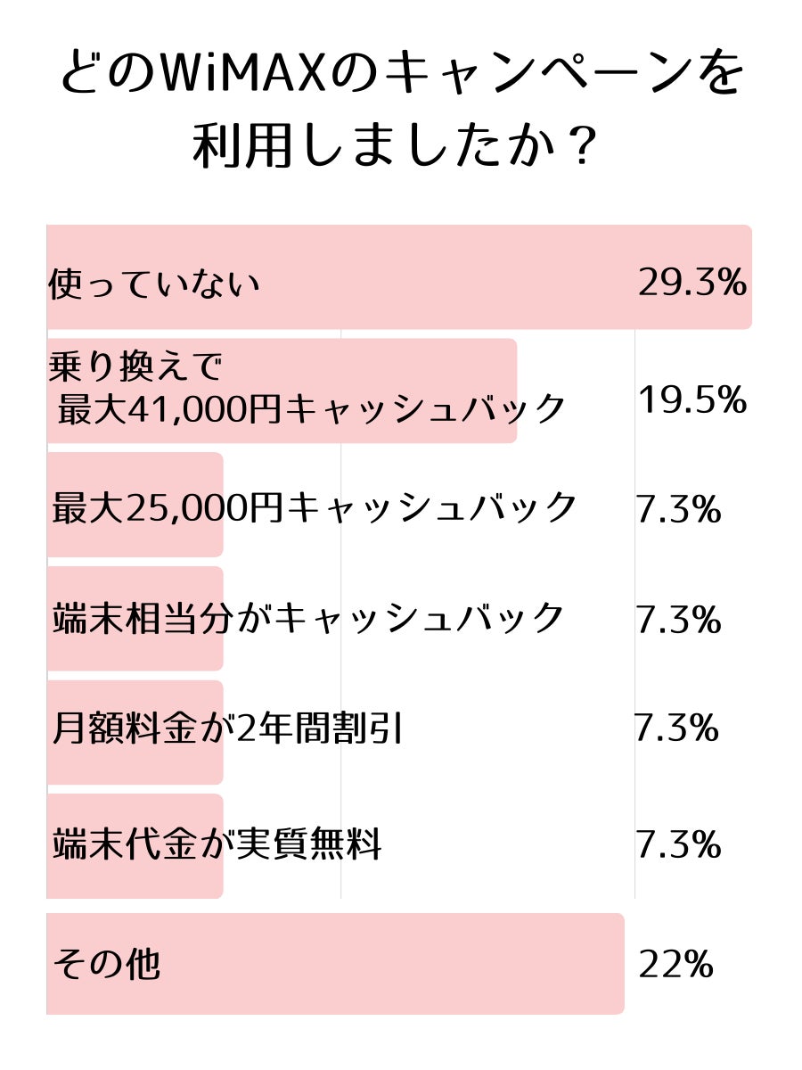 WiMAXのキャンペーンは「使っていない」という方が全体の約3割を占めていました。