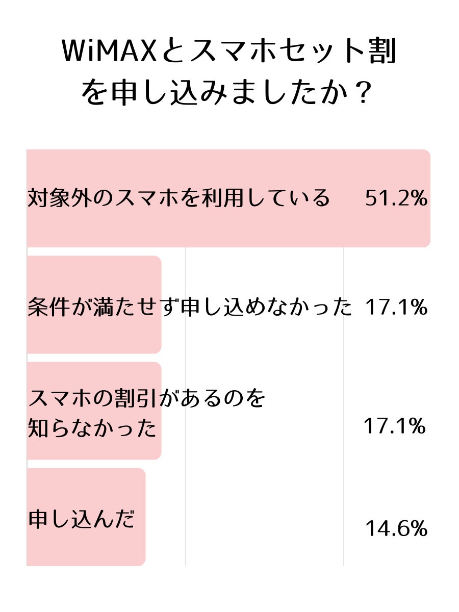 WiMAXとのスマホセット割を申し込んだ方は、全体の約15%しかいませんでした。