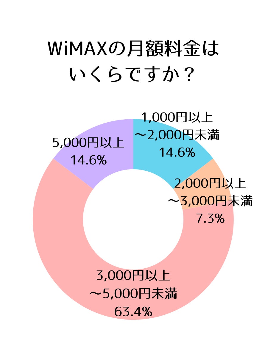 WiMAXの月額料金として、最も多かったのは3,000円〜5,000円未満で63.4%でした。