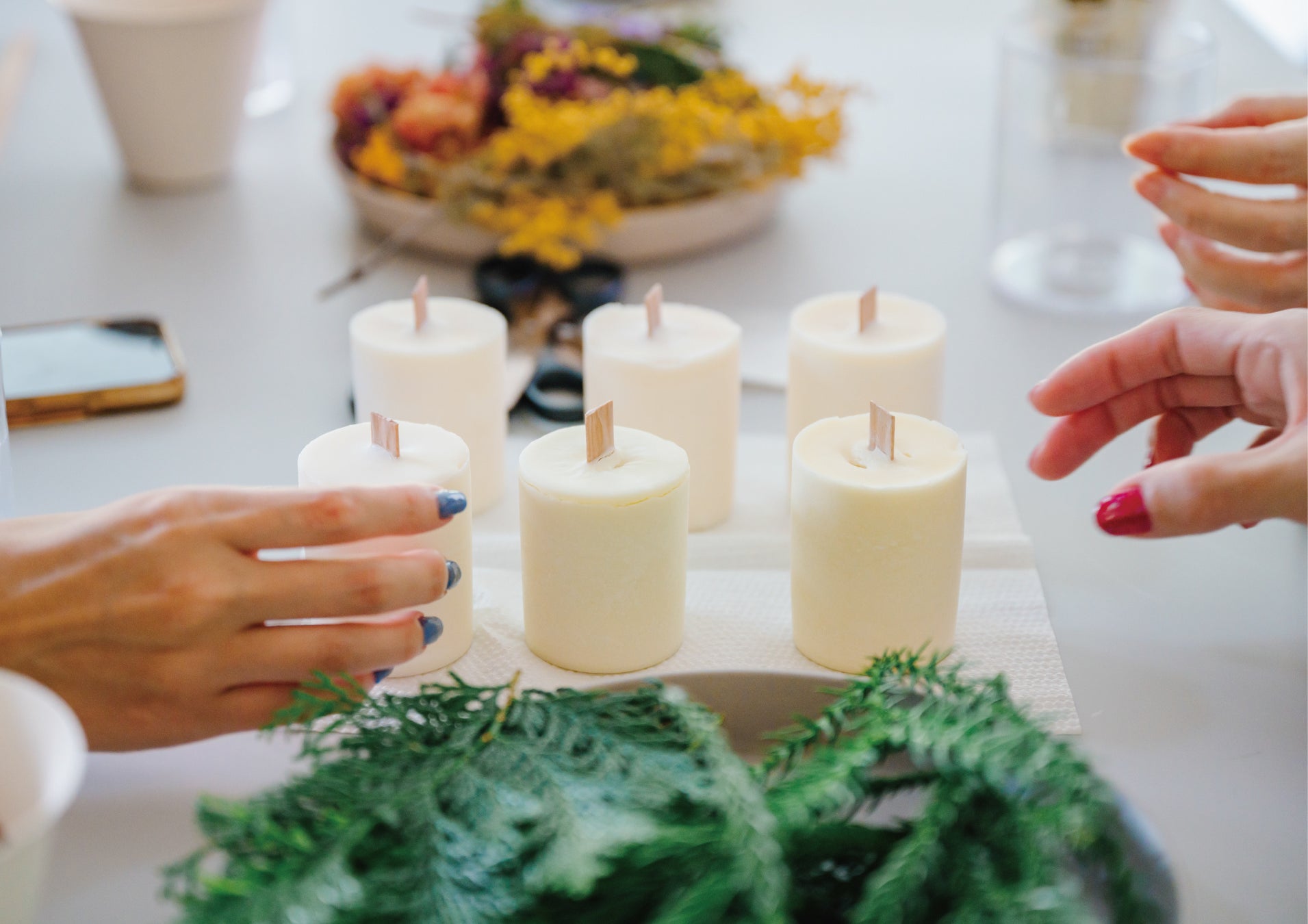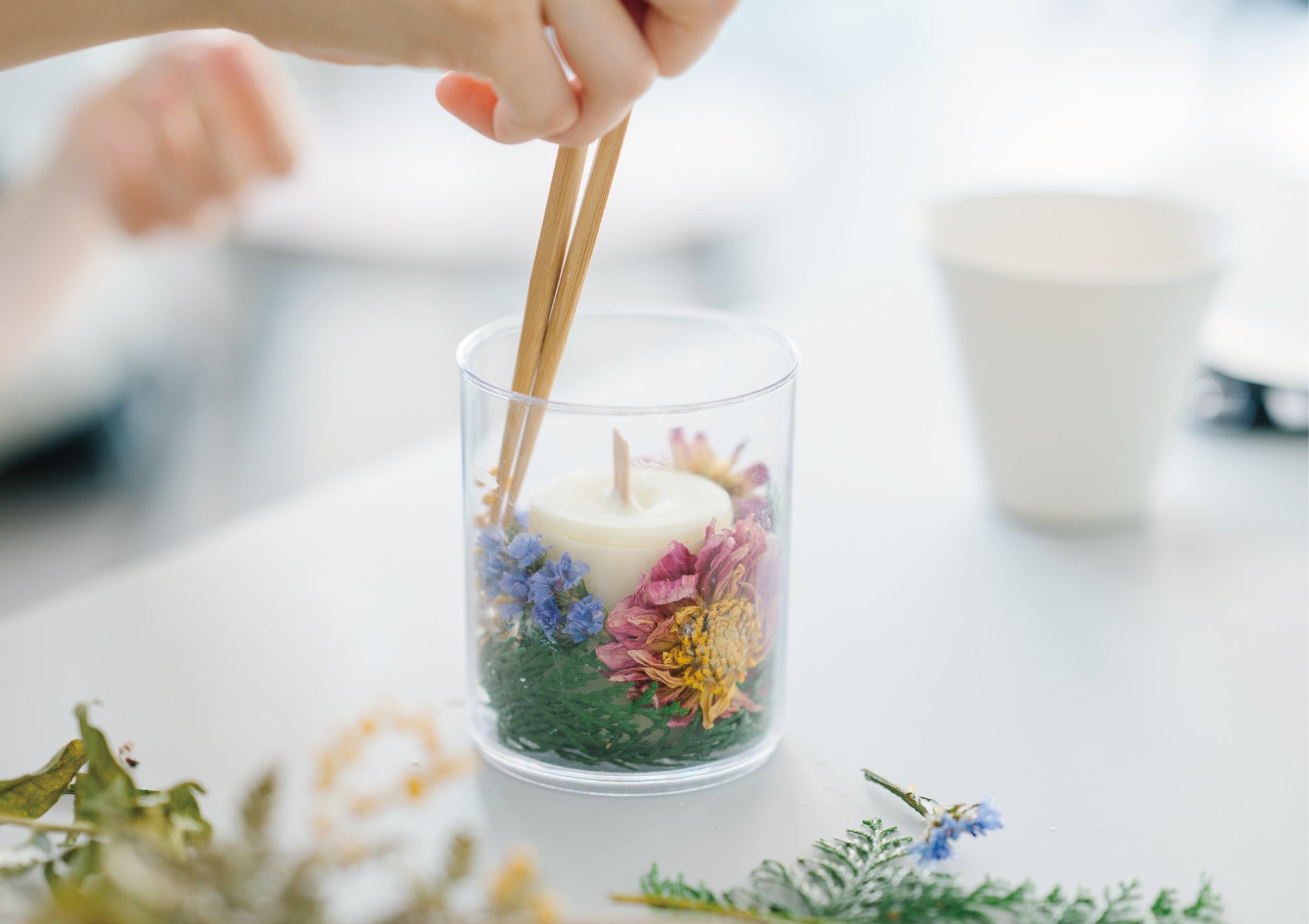 松原湖畔に自生する植物や自然素材を使い、オリジナルのキャンドルを制作するワークショップです。