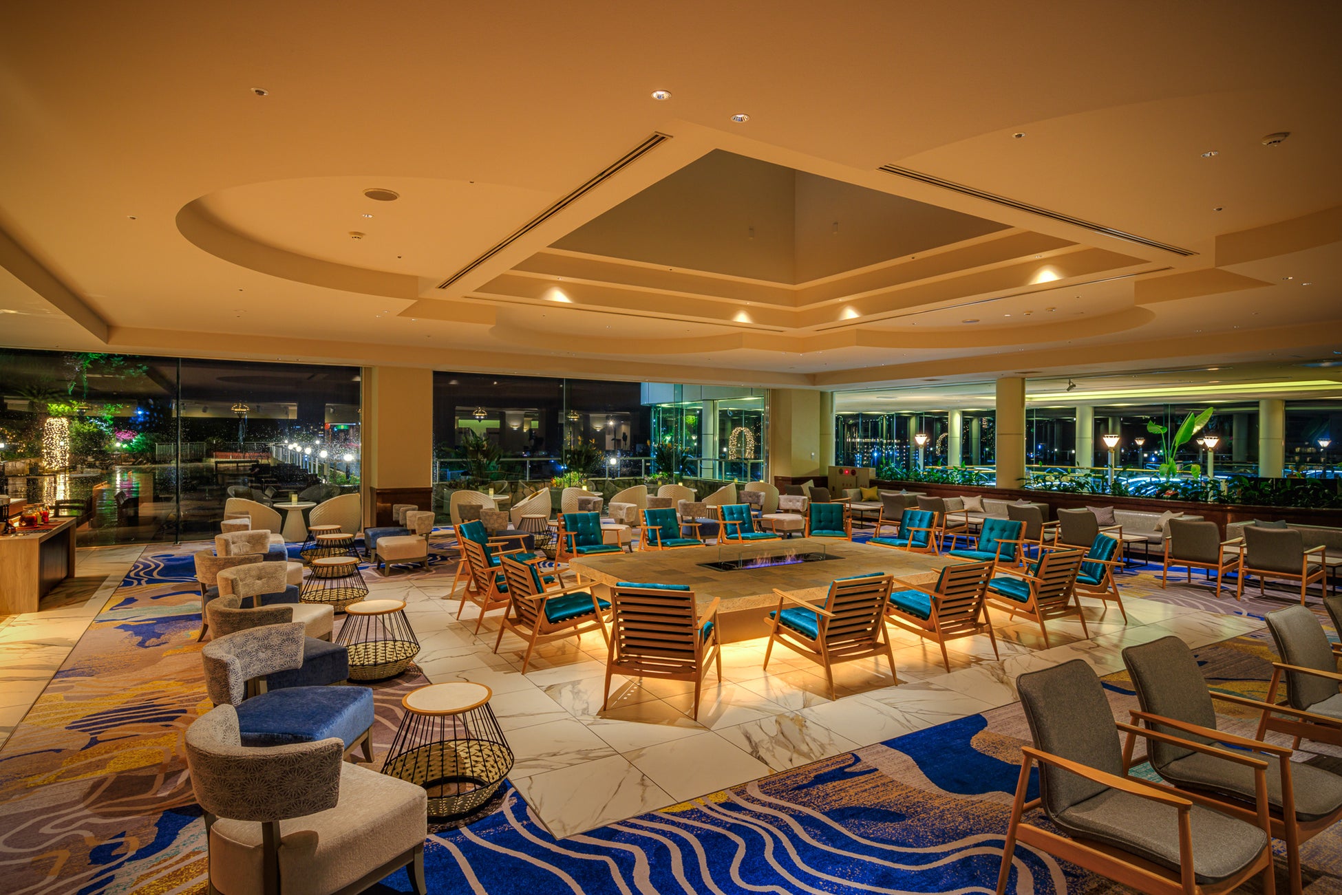 上質なひとときを過ごすことができるフリードリンクスタイルのラウンジです。センターには環境にやさしいバイオエタノール暖炉を配置し、ライブミュージックを楽しむ幻想的なナイトタイム、オーシャンビューの爽やかな朝にほろ苦いコーヒーで迎える新たな日と、時間と共に移り変わる雰囲気を楽しんでいただけます。
