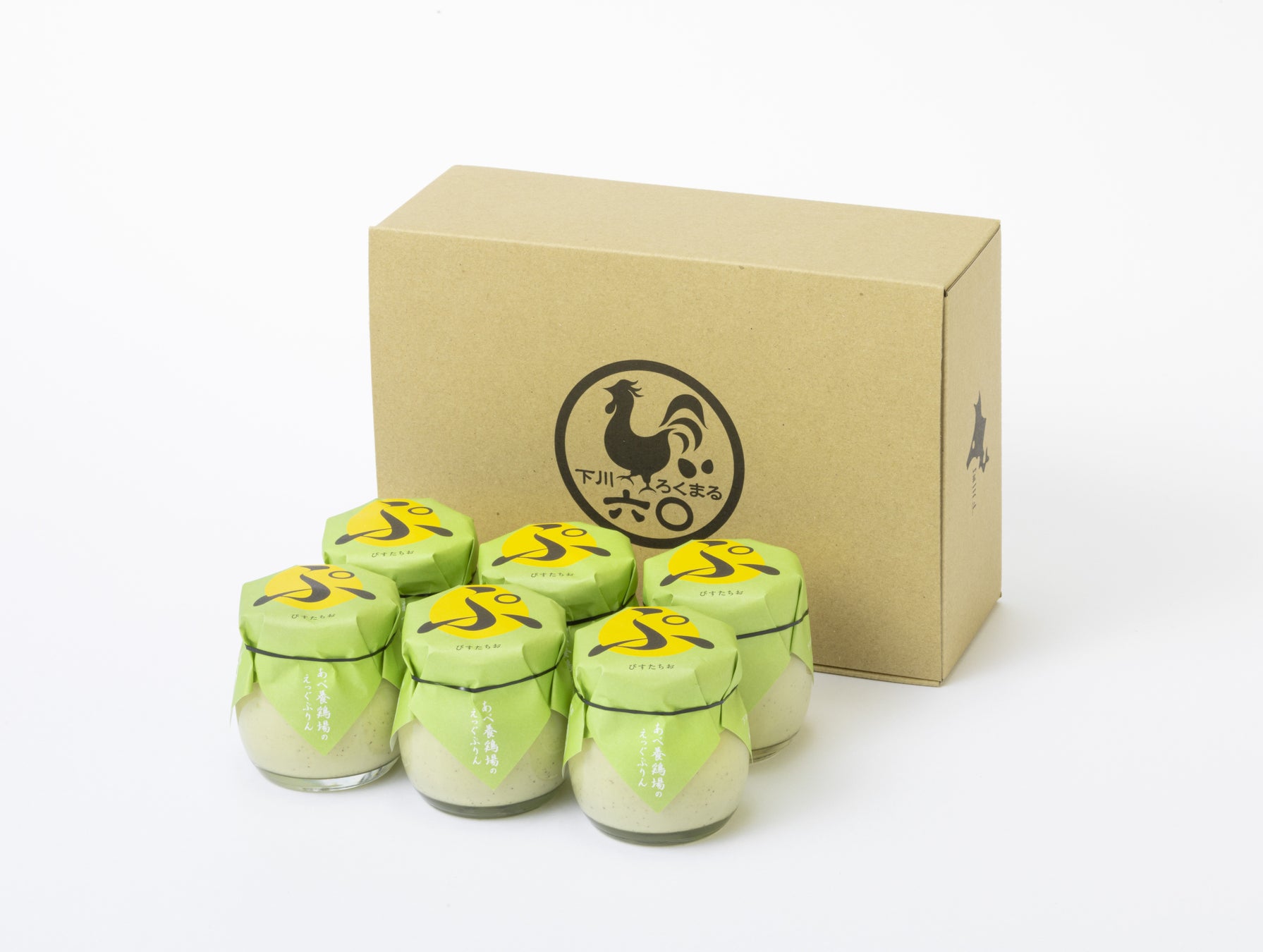 あべ養鶏場がつくった えっぐぷりんは、自社養鶏場で採れた新鮮なたまごを使い、素材は全て北海道のものを使用。安心・安全を守り、北海道下川町で一つ一つ丁寧に手作り。卵の甘さを味わってもらうためにカラメルソースをあえて使用せず、卵と牛乳の素朴な味わいが濃厚で深みのある、どこか懐かしい素朴でしっかり食感のぷりんに仕上げています。