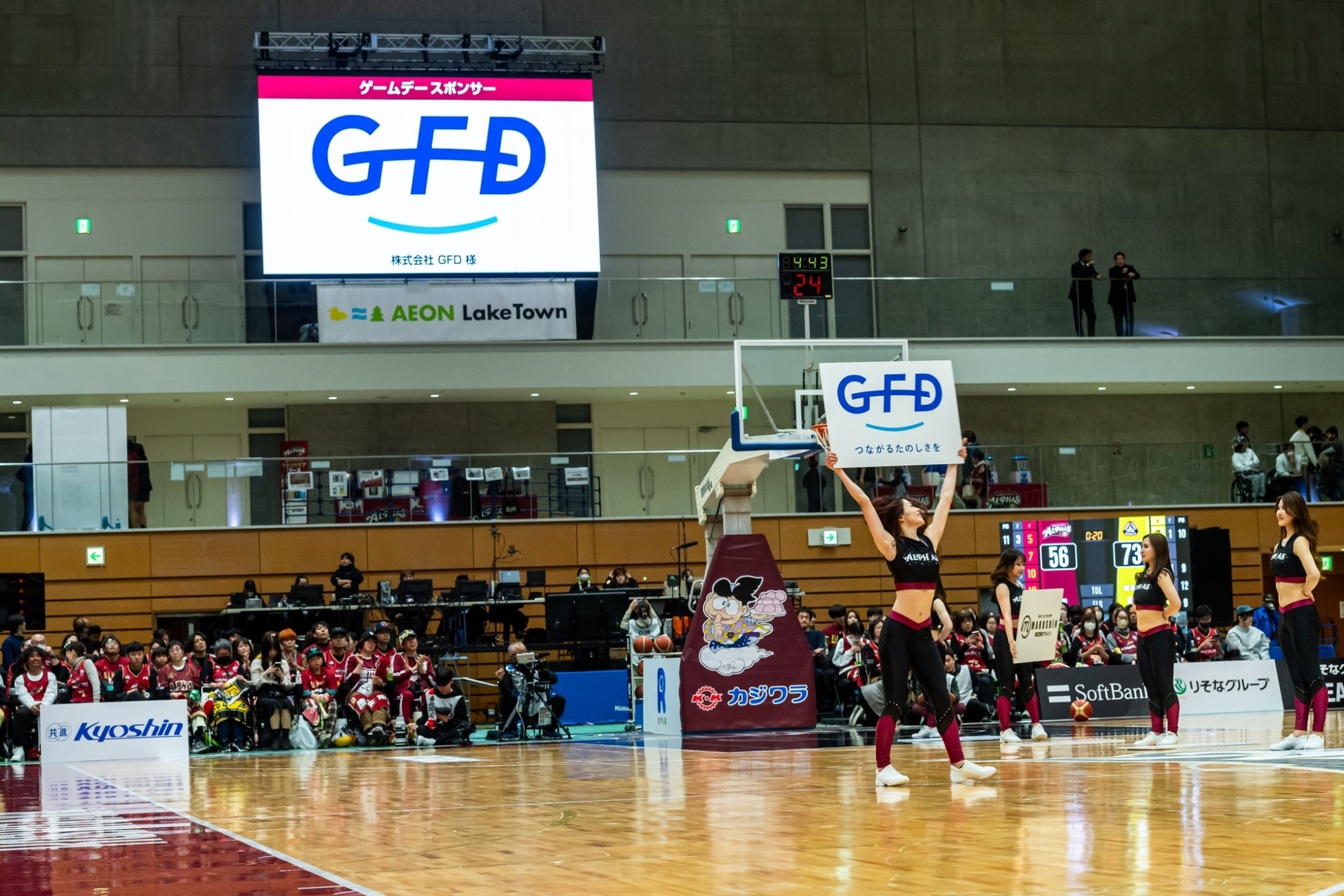 さらに試合当日はGFDのロゴがコート上やビジョンに掲出され、GFDのブランドメッセージを広く発信する場ともなりました。