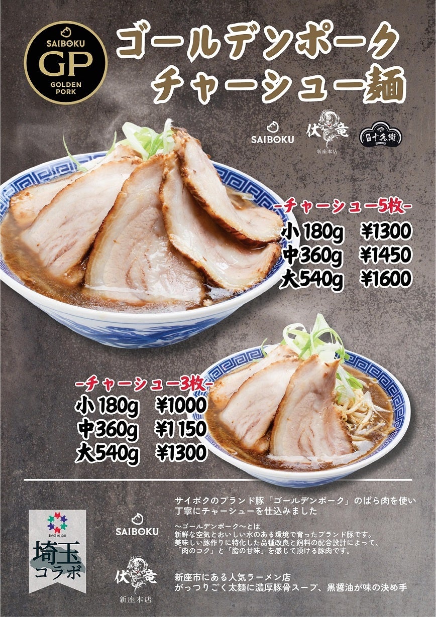 サイボクのブランド豚「ゴールデンポーク」のばら肉を使い丁寧にチャーシューを仕込みました。