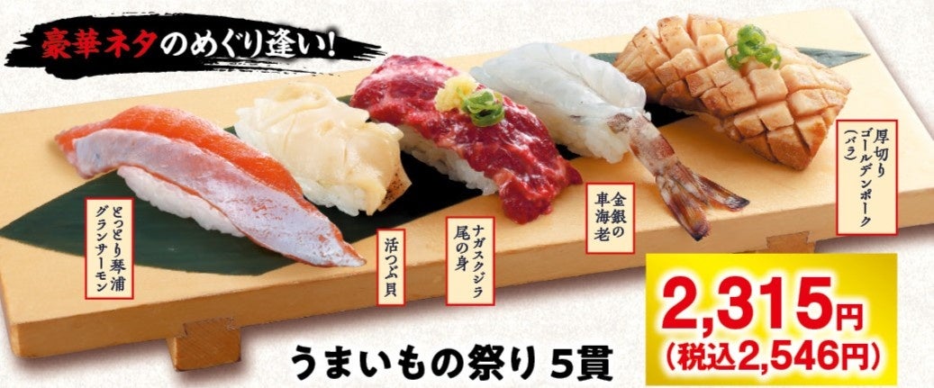 厚切りゴールデンポーク(バラ)を始め豪華ネタの5貫握りも限定販売しています。