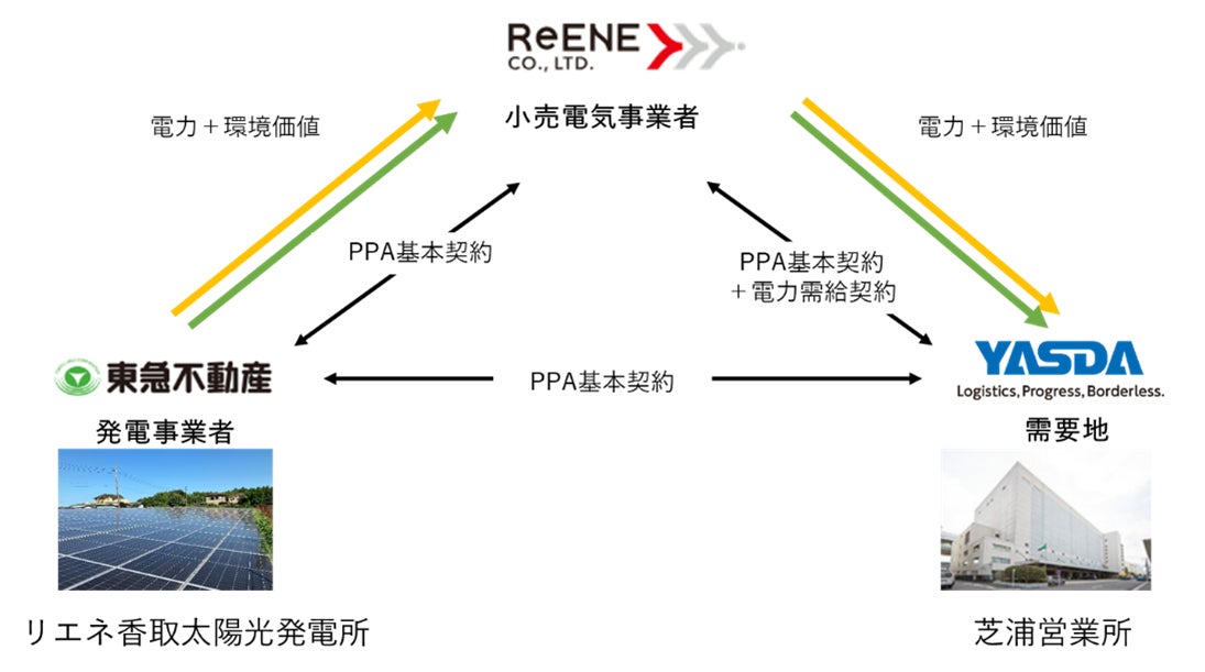 安田倉庫株式会社(本社:東京都港区、代表取締役社長:小川一成、以下「安田倉庫」)、東急不動産株式会社(本社:東京都渋谷区、代表取締役社長:星野浩明、以下「東急不動産」)、株式会社リエネ(本社:東京都渋谷区、代表取締役:根津登志之、以下「リエネ」)は、安田倉庫のCO₂排出量の削減に向けた取り組みの一環として、オフサイト型コーポレートPPA契約(以下、「本PPA」)を締結しましたので、お知らせいたします。