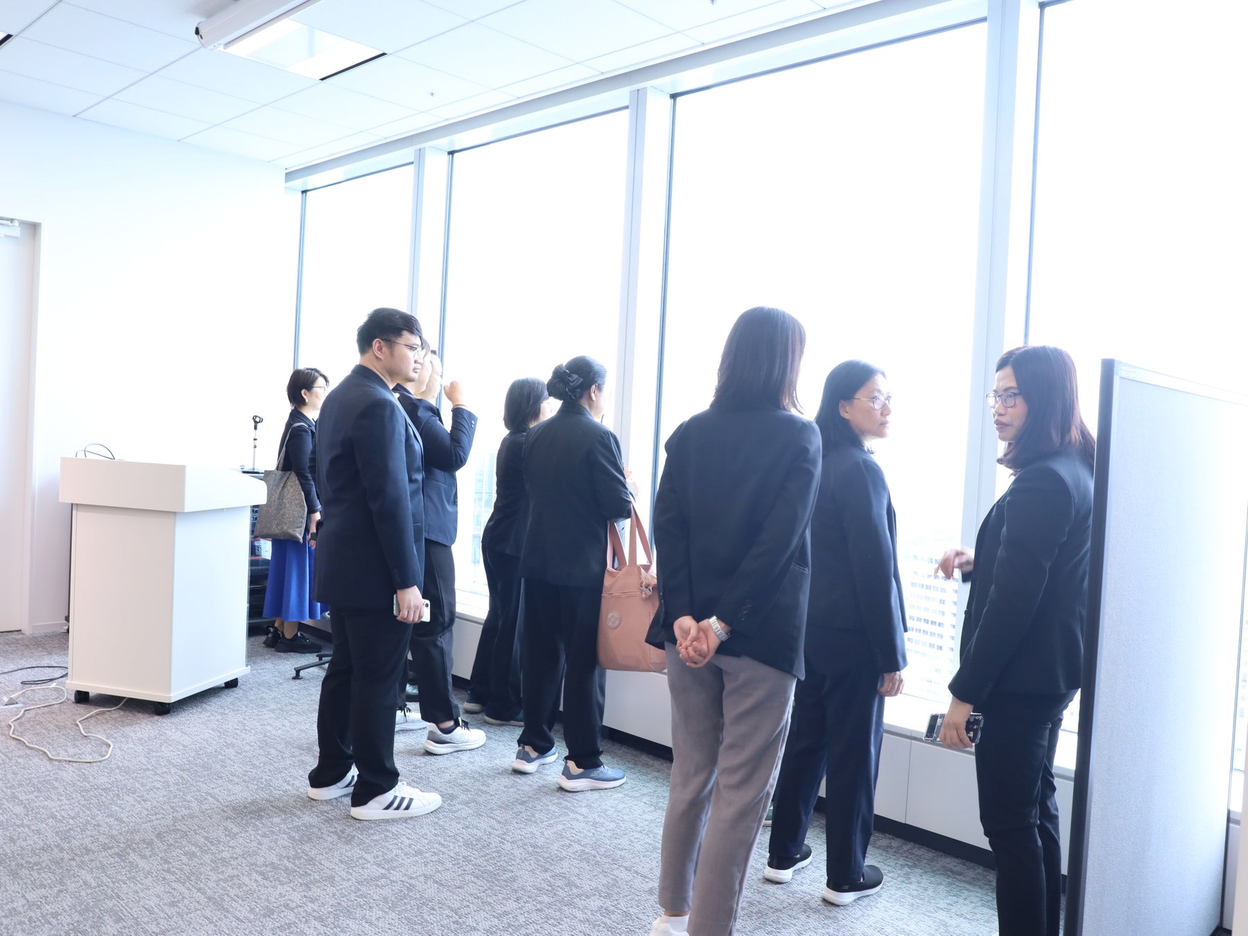 交流会では、CARTA MARKETING FIRMのオフィスツアーも開催しました。働きやすさを追求し、用途別に工夫されたレイアウト、設備、デザインを、研修団が熱心に観察し、たくさんの質問が飛び交いました。また、東京タワー、首相官邸、皇居など東京の中心部をぐるりと見下す眺望に感嘆の声が上がり、記念撮影も行われました。