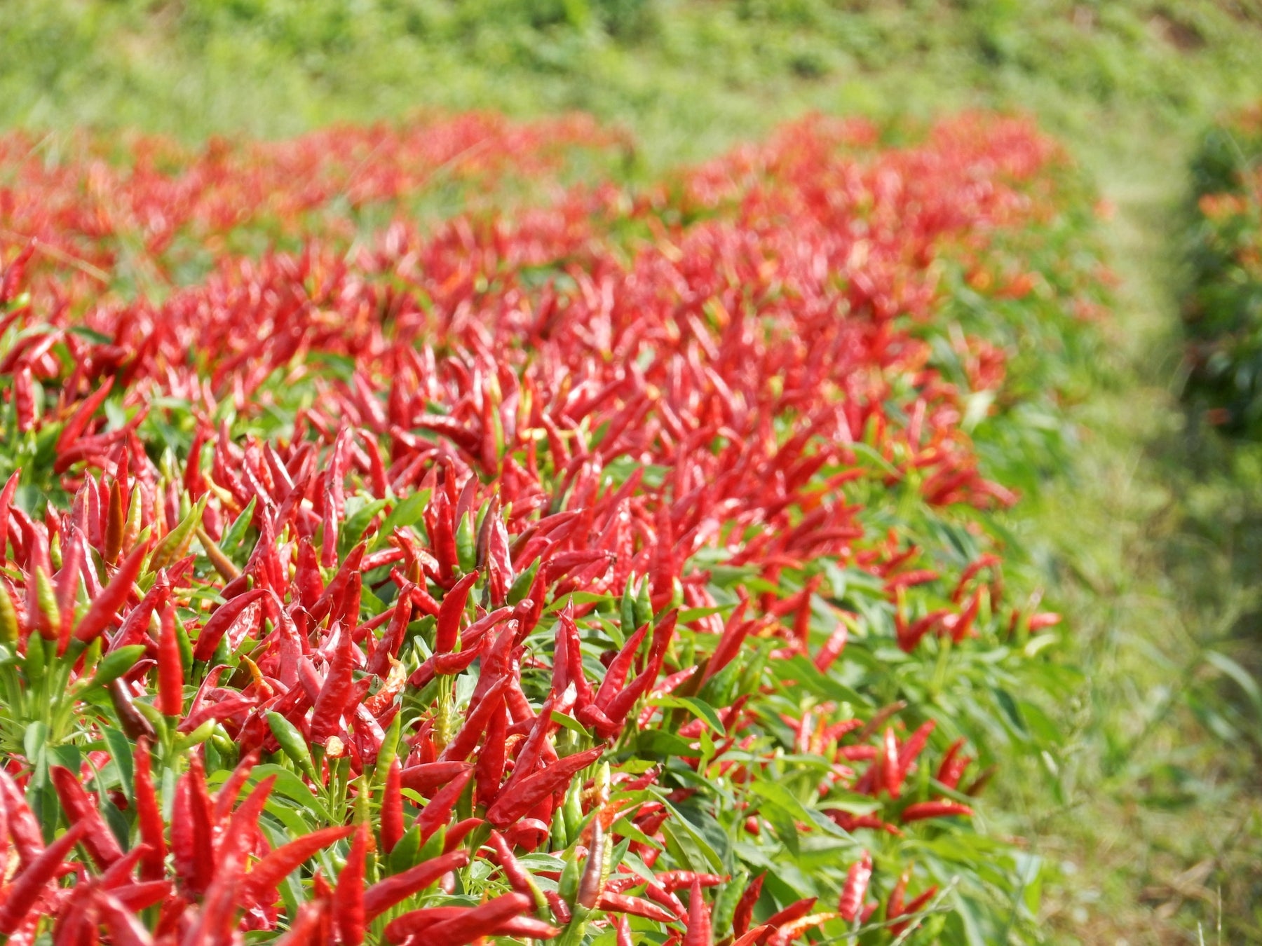 八幡屋礒五郎が品種登録をしている〈信八(しんはち)〉は、2016年に【信州大学農学部】と【八幡屋礒五郎】が約10年間をかけて共同開発した唐辛子です。適度な辛さがあり、早生性のため冷涼な長野県での栽培に適しているのが特徴的です。秋になると、畑一面が赤く染まります。