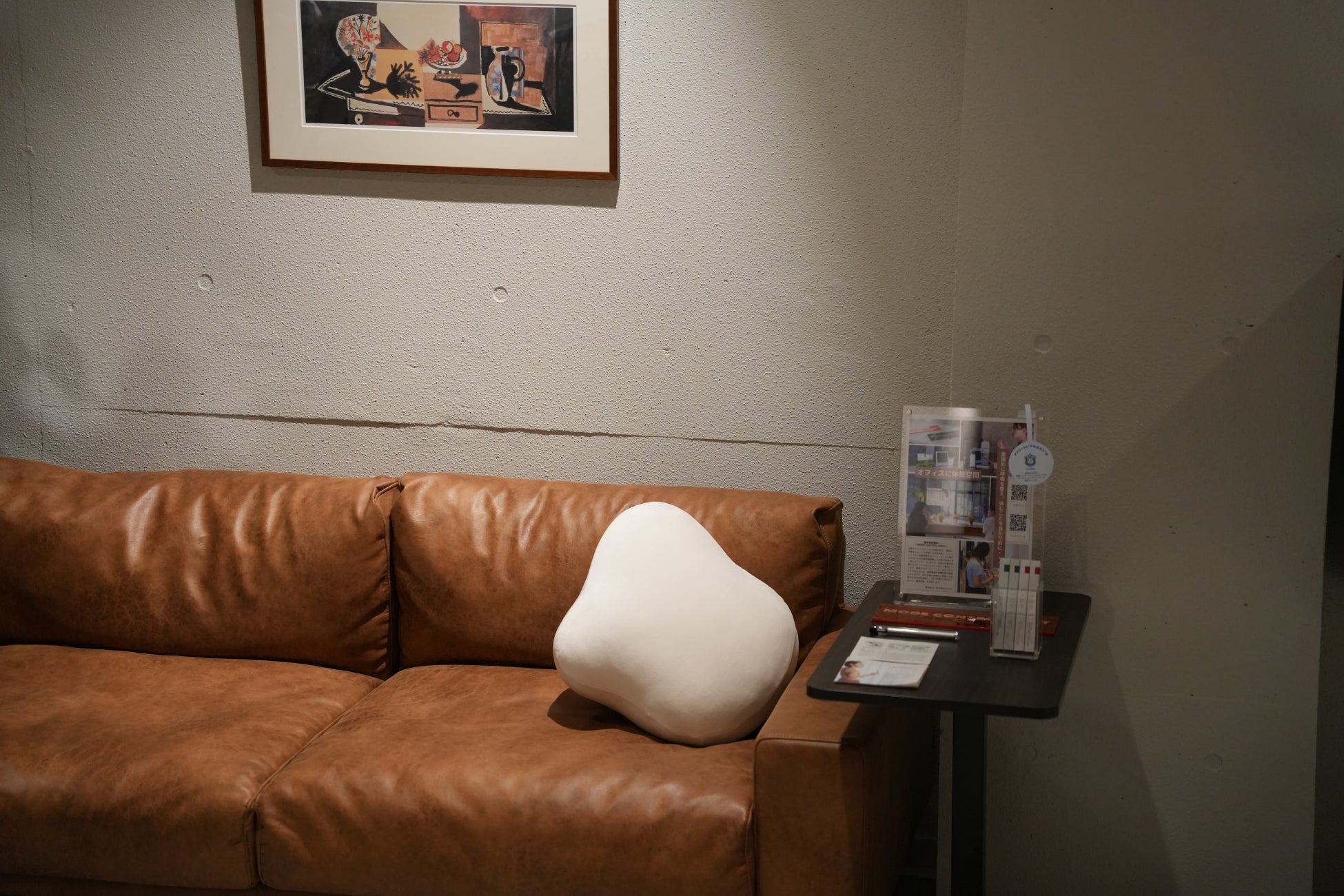 クリエイティブガレージ内に置く『深呼吸休憩所』は、BREATHER株式会社(本社:東京都港区、代表取締役 御神村友樹)が開発する深呼吸サポートデバイス「ston s(ストンエス)」と 呼吸するクッション「fufuly(フフリー)」を活用し、働く人々が意識的な休息を取り、パフォーマンスを向上できる空間を提供しています。クリエイティブガレージの利用者は仕事の合間にソファでくつろぎながら呼吸を整えることができます。